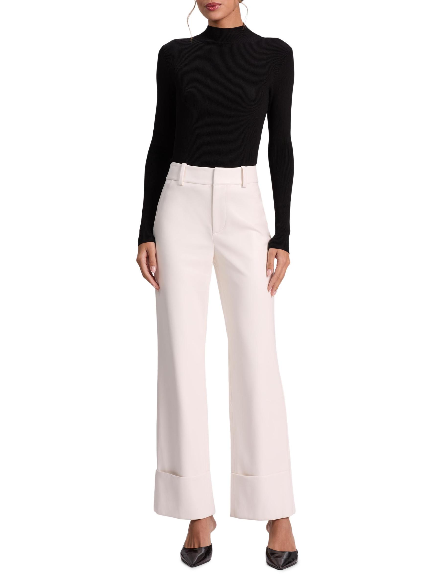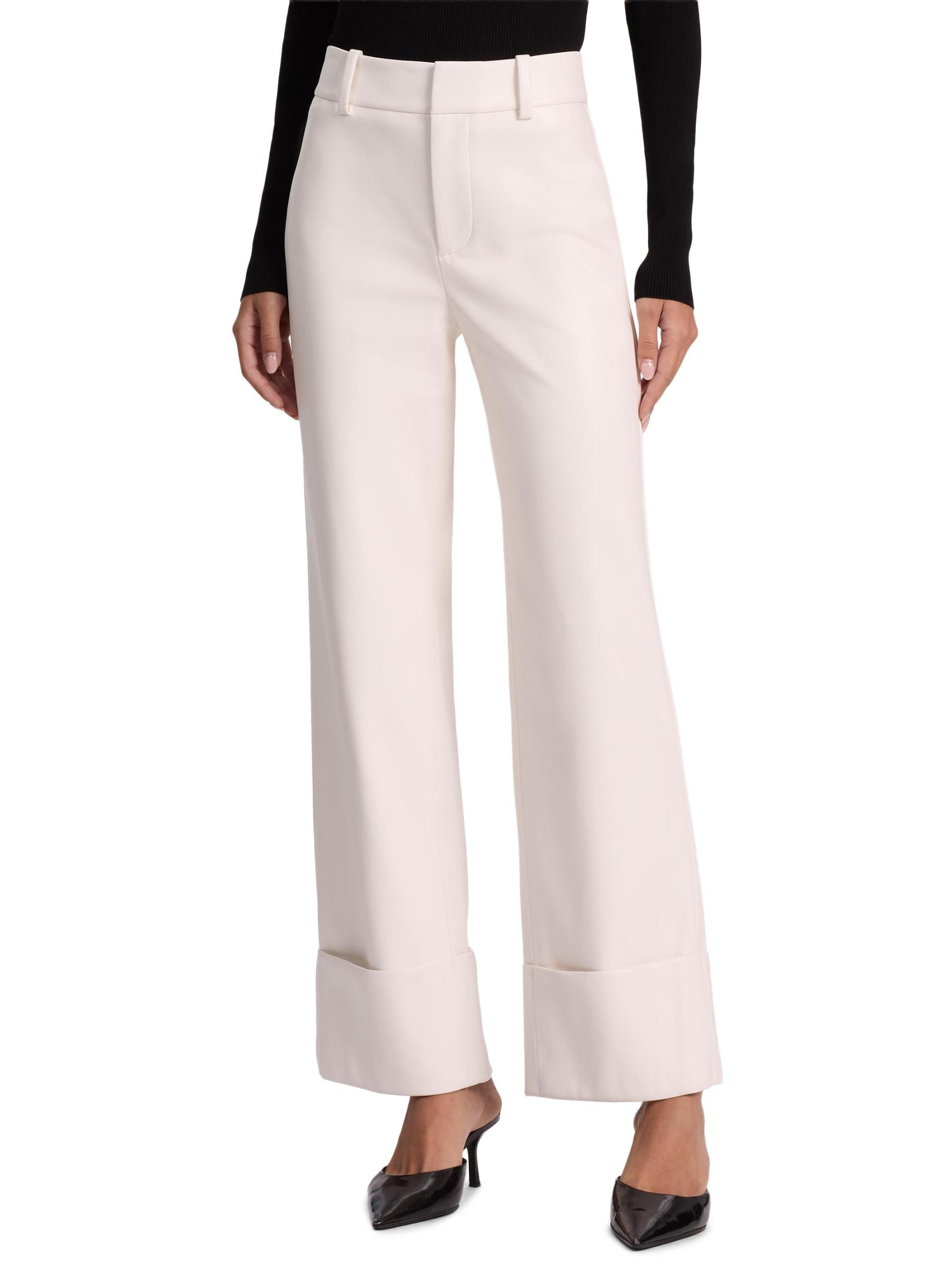 هذا البنطال أليكساندر من Alice + Olivia مصنوع من الجلد الصناعي، ويتميز بتصميم واسع الساق وجيوب ضيقة مزينة بأساور مطوية.