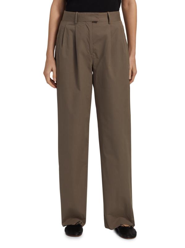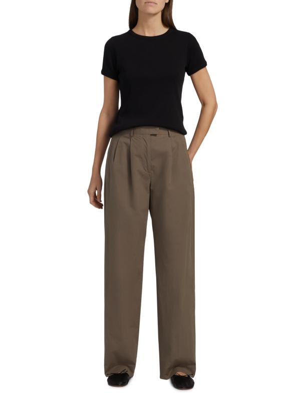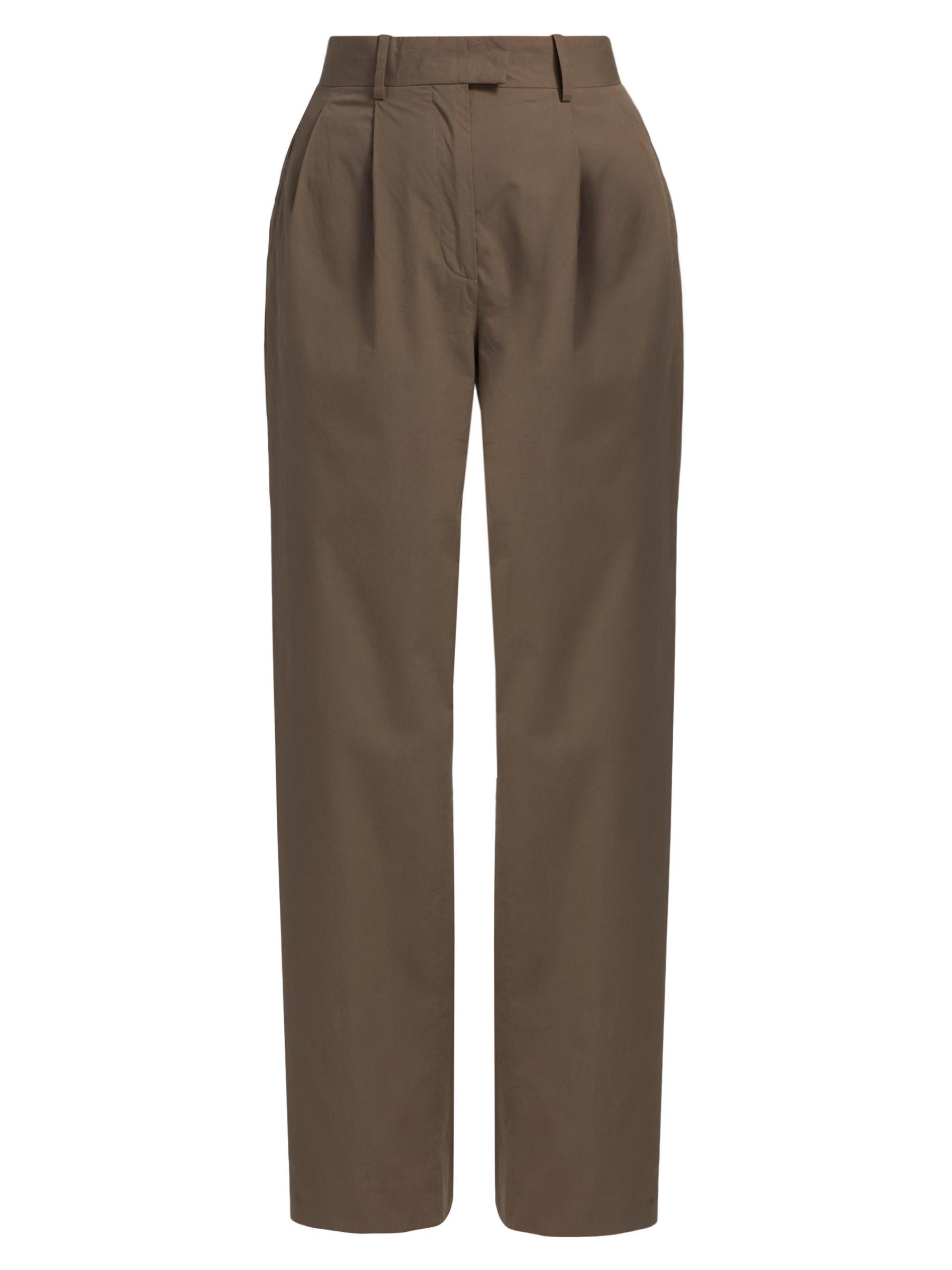 صُنع بنطال Alfidis من The Row من القطن في شكل ثنيات أمامية بأرجل مستقيمة. يتميز هذا الزوج بحزام خصر مطول وجيوب جانبية وجيب خلفي محشو.