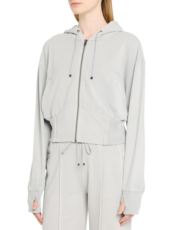 قلنسوة Allegra من Blanc Noir مصنوعة من القطن المصبوغ بالزي ومُصمّمة بزخرفة بحواف خام.غطاء رأس مُثبت برباط أكتاف منسدلة أكمام طويلة وفتحات بفتحة للإبهام جيوب ضيقة للخصر حافة مضلّعة إغلاق بسحّاب أمامي قطن بنسبة 100% يُغسل في الغسالة مستوردة