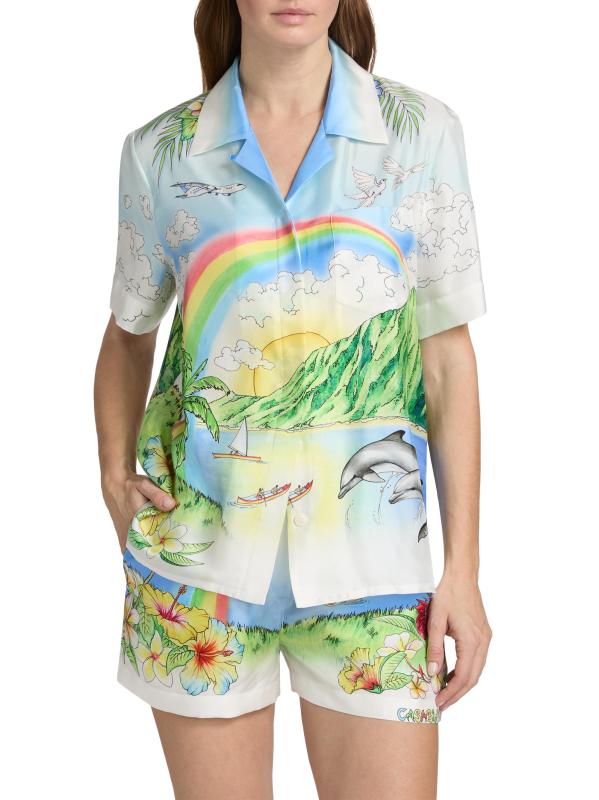 قميص مخيم من الحرير بطبعة Aloha