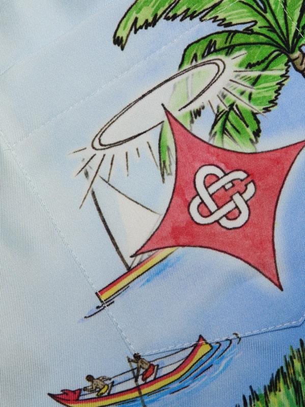 صُنعت شورتات ألوها من الدار البيضاء من الحرير الإيطالي بطبعة مصورة مستوحاة من هاواي، وهي مصممة بقصة غير رسمية ومريحة ومزينة بحزام خصر مطاطي. ذبابة وهمية وجيوب متعددة تكمل المظهر.