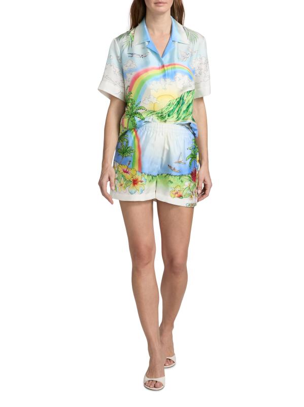 شورت من الحرير بطبعة Aloha