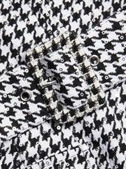 حوالي 34.5 بوصة من الكتف إلى الحافة الصدر: حوالي 33 بوصة قياسات النموذج: بطول 5 أقدام و10 بوصات ترتدي العارضة مقاس 4 في الولايات المتحدة