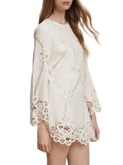 صُنع فستان Amberg الصغير من Veronica Beard من القطن والكتان، ويتميز بتفاصيل مطرزة وثقوب. تضيف الأكمام الطويلة الواسعة لمسة من الأناقة إلى هذا المظهر.