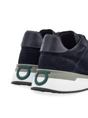 حذاء أمريكا الرياضي ذو الرقبة المنخفضة من FERRAGAMO مصنوع من الجلد المدبوغ المرن مع نعل مطاطي ثنائي اللون. تتميز شعارات Ganicini المميزة بتفاصيل الكعب العالي لهذا الزوج.