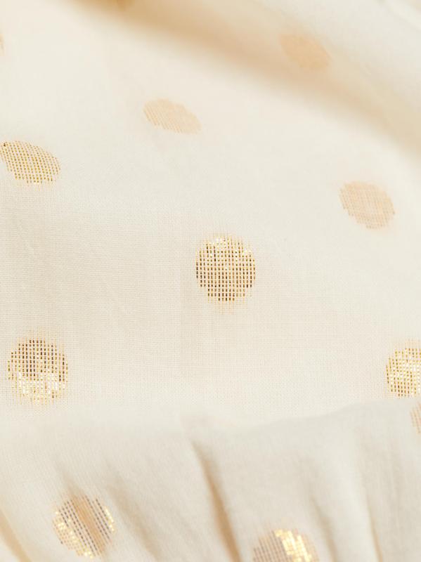 يتميز فستان آنا من Love the Label بنمط نقطي معدني وفتحة رقبة على شكل حرف V. تُكمل الأكمام القصيرة المنفوخة والزخارف المتباينة هذه القطعة ذات الطول الصغير.رقبة سوربليس على شكل حرف V أكمام قصيرة إغلاق برباط جانبي قطن بنسبة 100% غسيل يدوي مستوردة