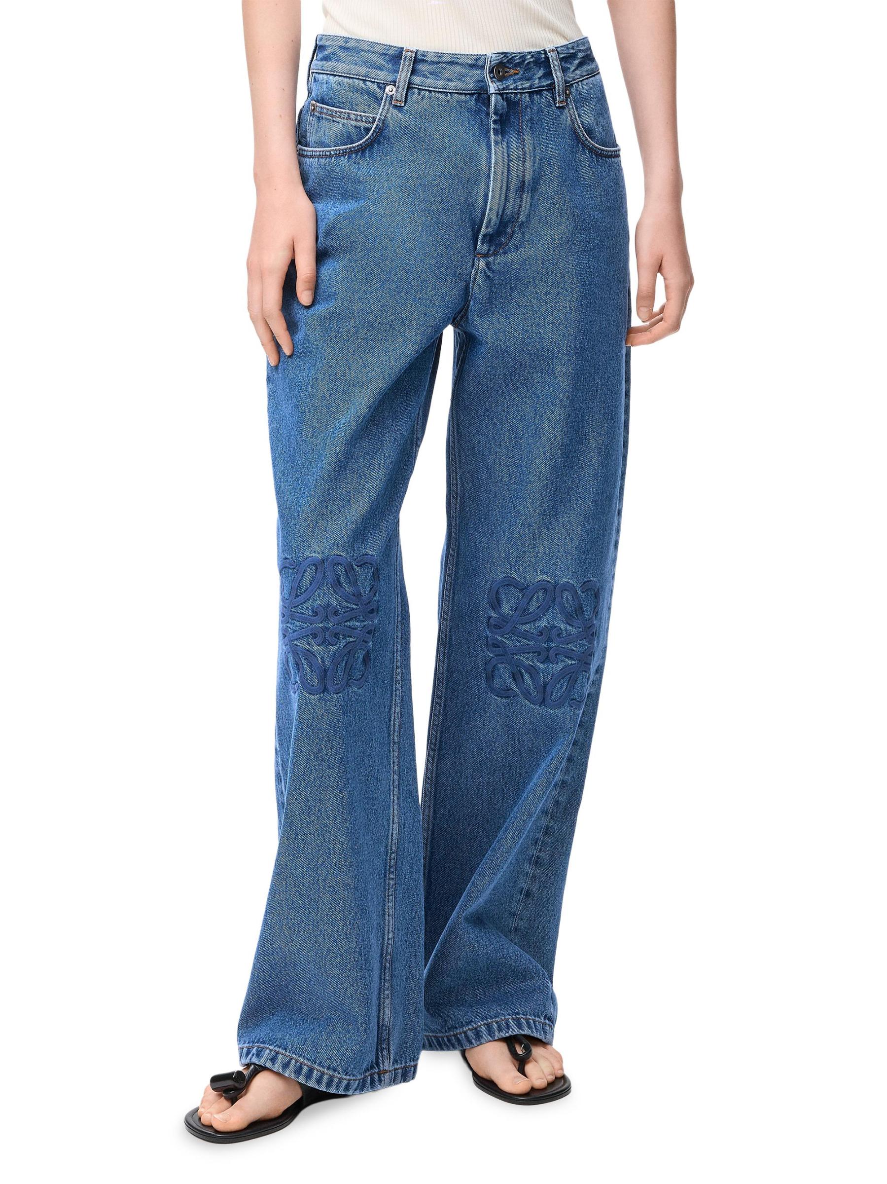 يُضفي هذا البنطال الجينز الفضفاض من LOEWE لمسة عصرية على الجينز الكلاسيكي، وذلك بفضل تصميمه المريح ذو الساق المستقيمة. تم الانتهاء من التصميم بتفاصيل أناغرام متناسقة على الركبتين، مما يضيف توقيع المنزل الرقيق إلى الصورة الظلية المريحة.