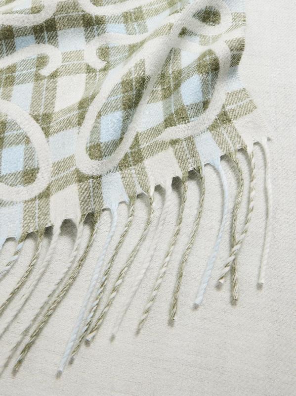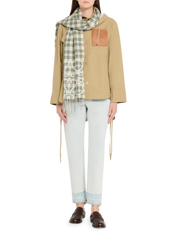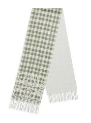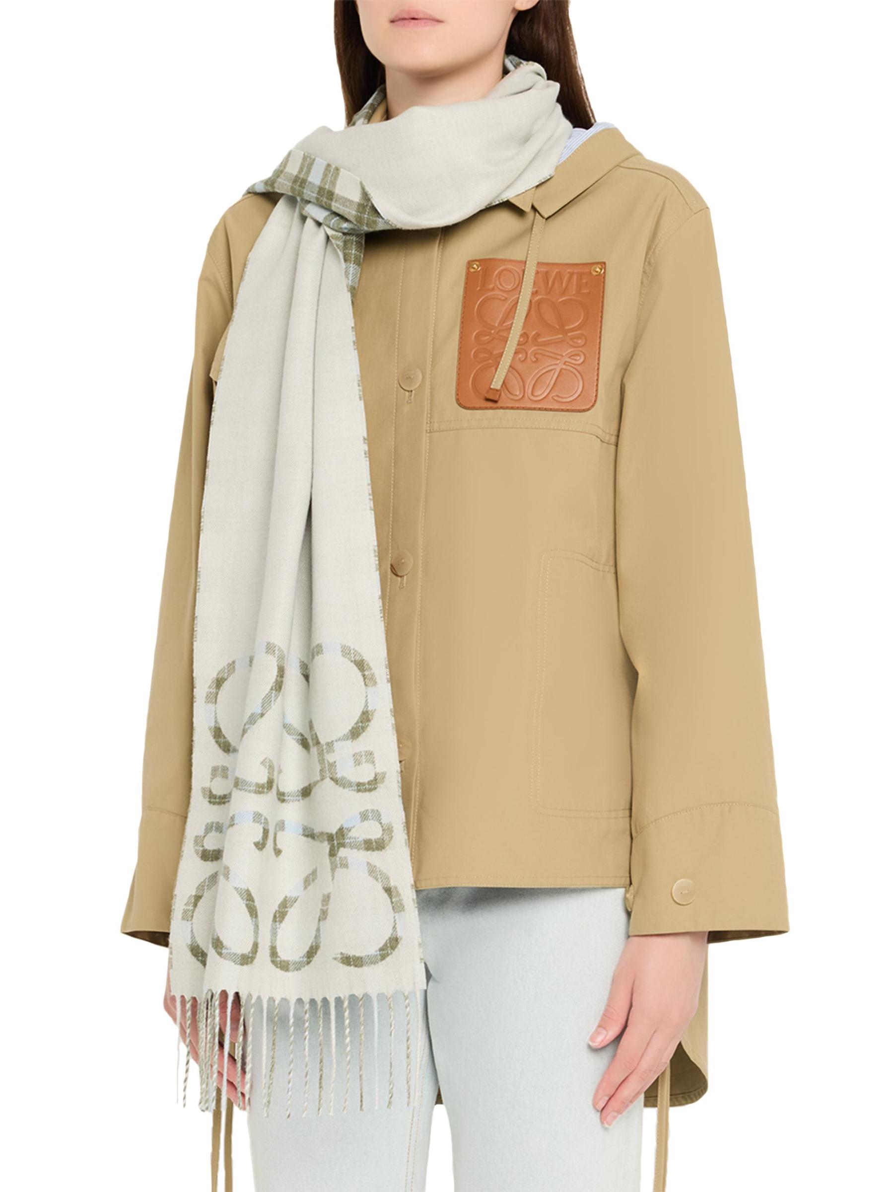 يتميز هذا الوشاح القابل للانعكاس من LOEWE، المصنوع من الحرير والكشمير، بنقوش منقوشة مع شعار الجناس المطرز وزخرفة على شكل أهداب.
