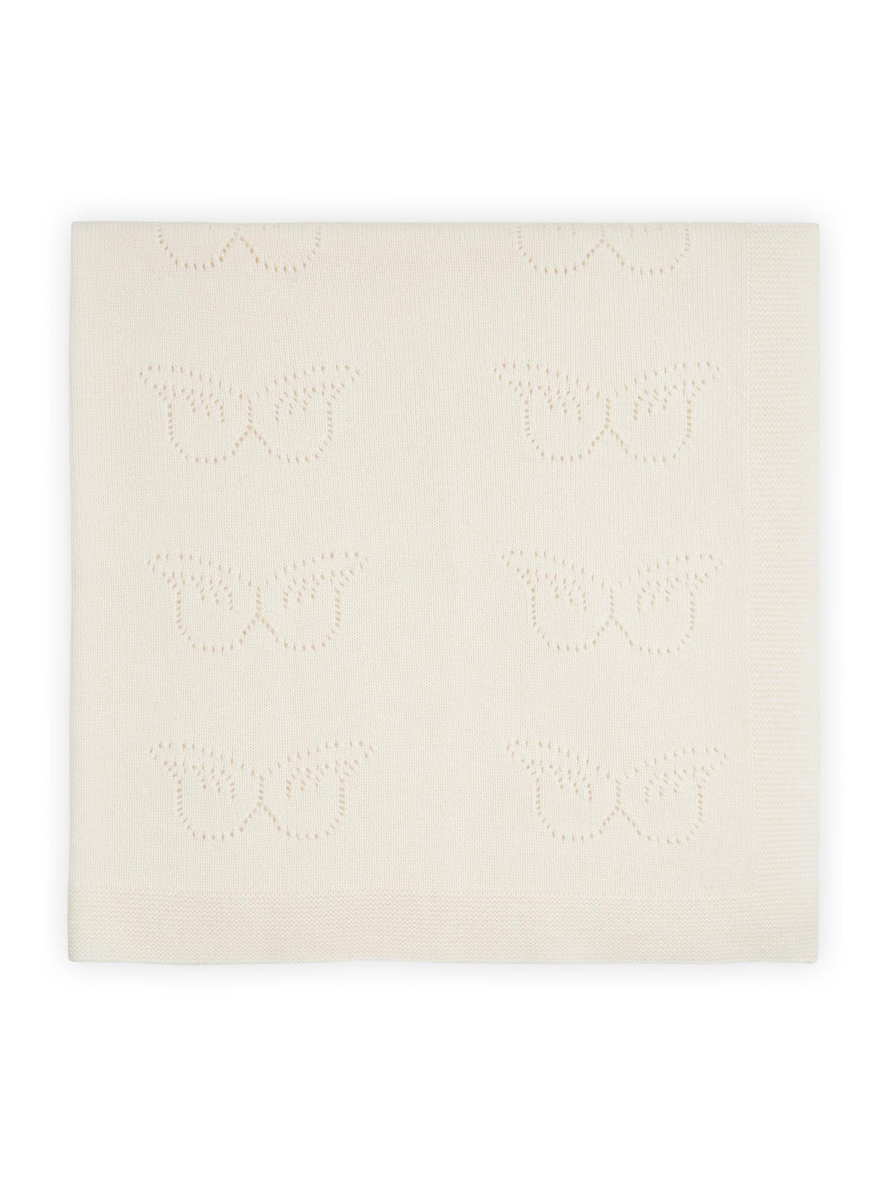 تتميز بطانية ماري شانتال المريحة المصنوعة من الكشمير الفاخر بأجنحة ملاك مطرزة في جميع الأنحاء.