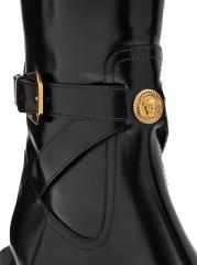 تم تصميم أحذية Angelo Chelsea هذه من فيرساتشي، المصنوعة من الجلد، بكعب مكشوف مكدس. تم تزيين هذا الزوج الأنيق ذو الأصابع المربعة بعصا سحب منقوشة باللون الأخضر وحزام للكاحل وأجزاء ميدوسا المركزية.