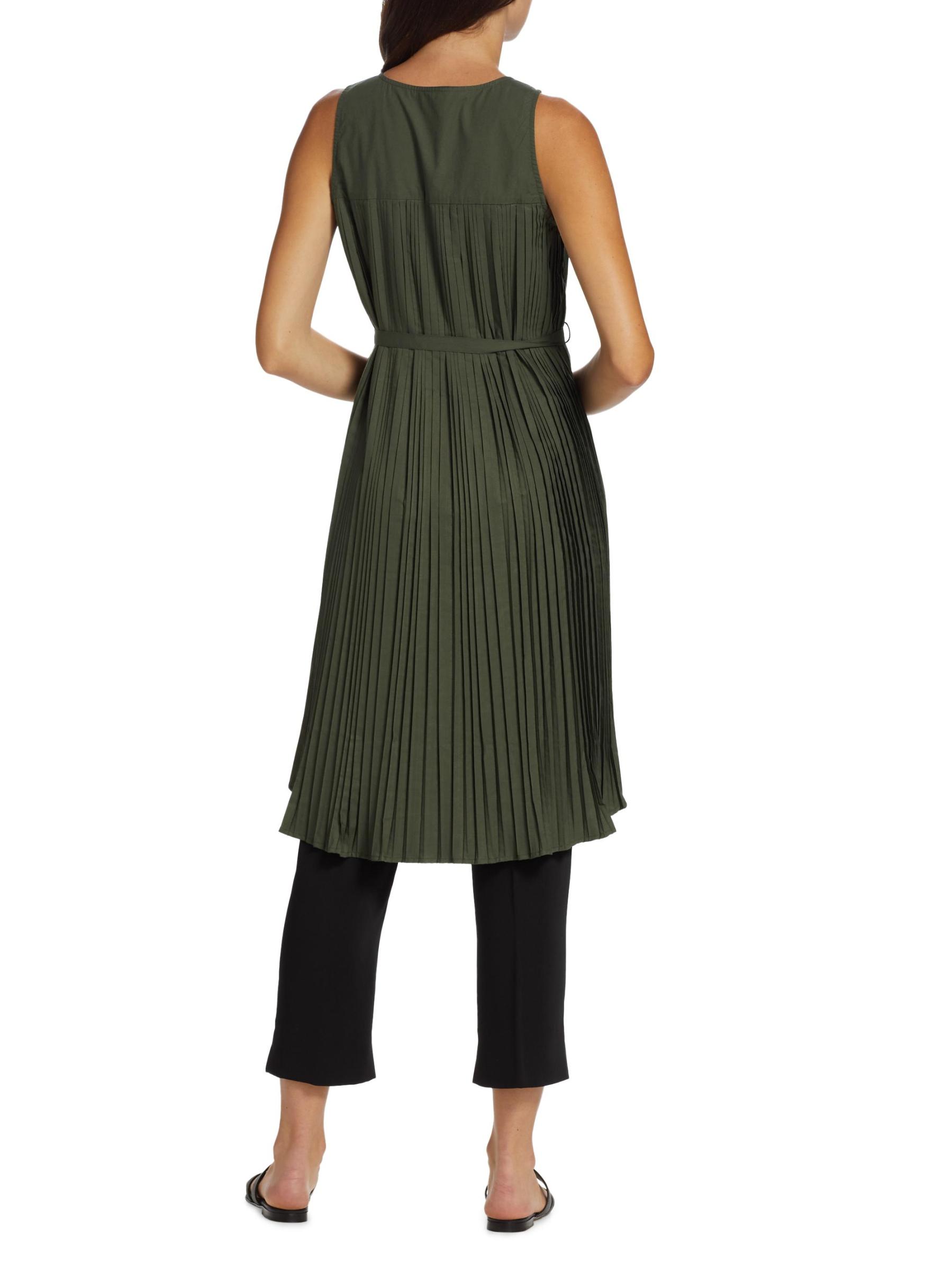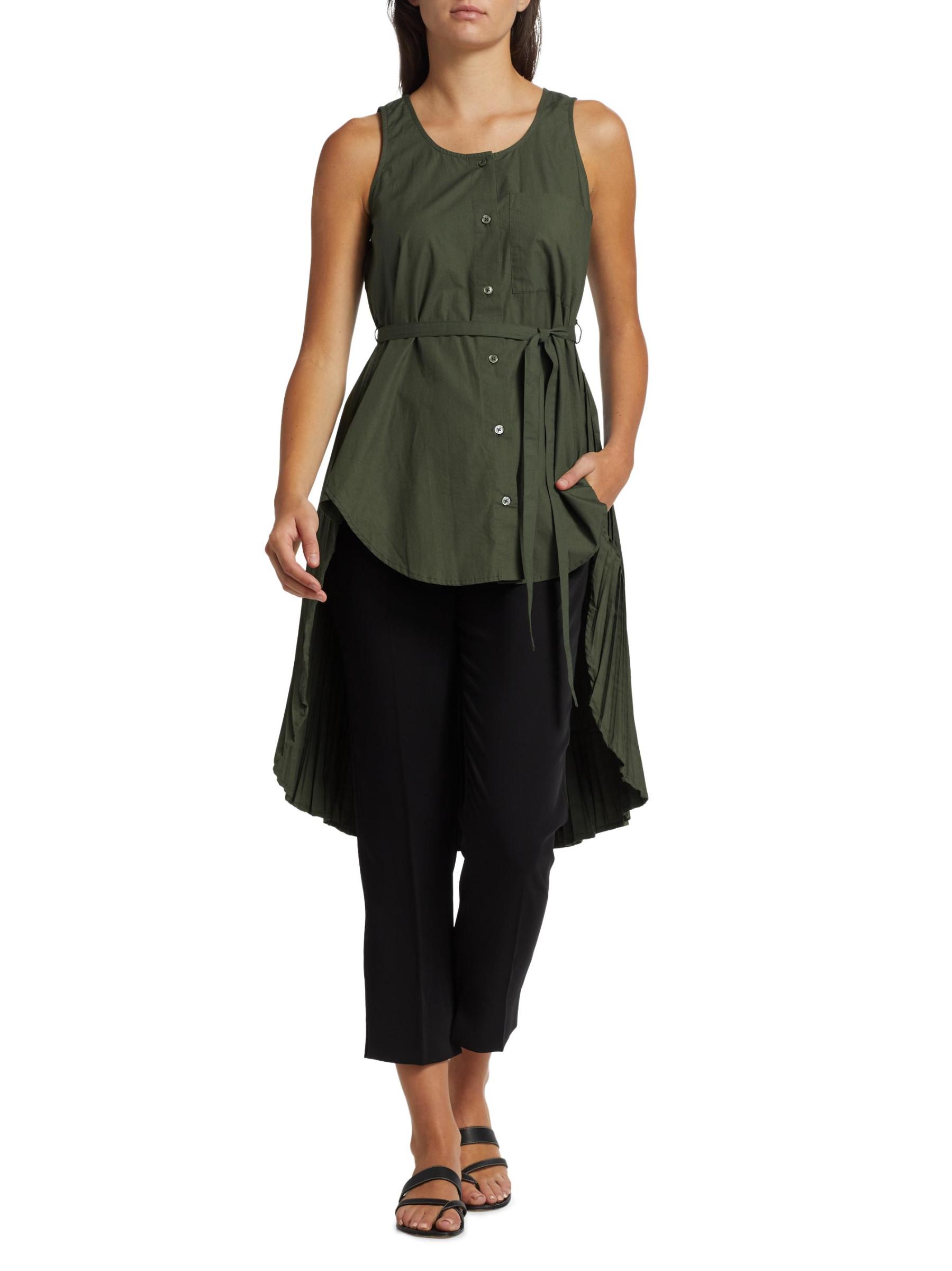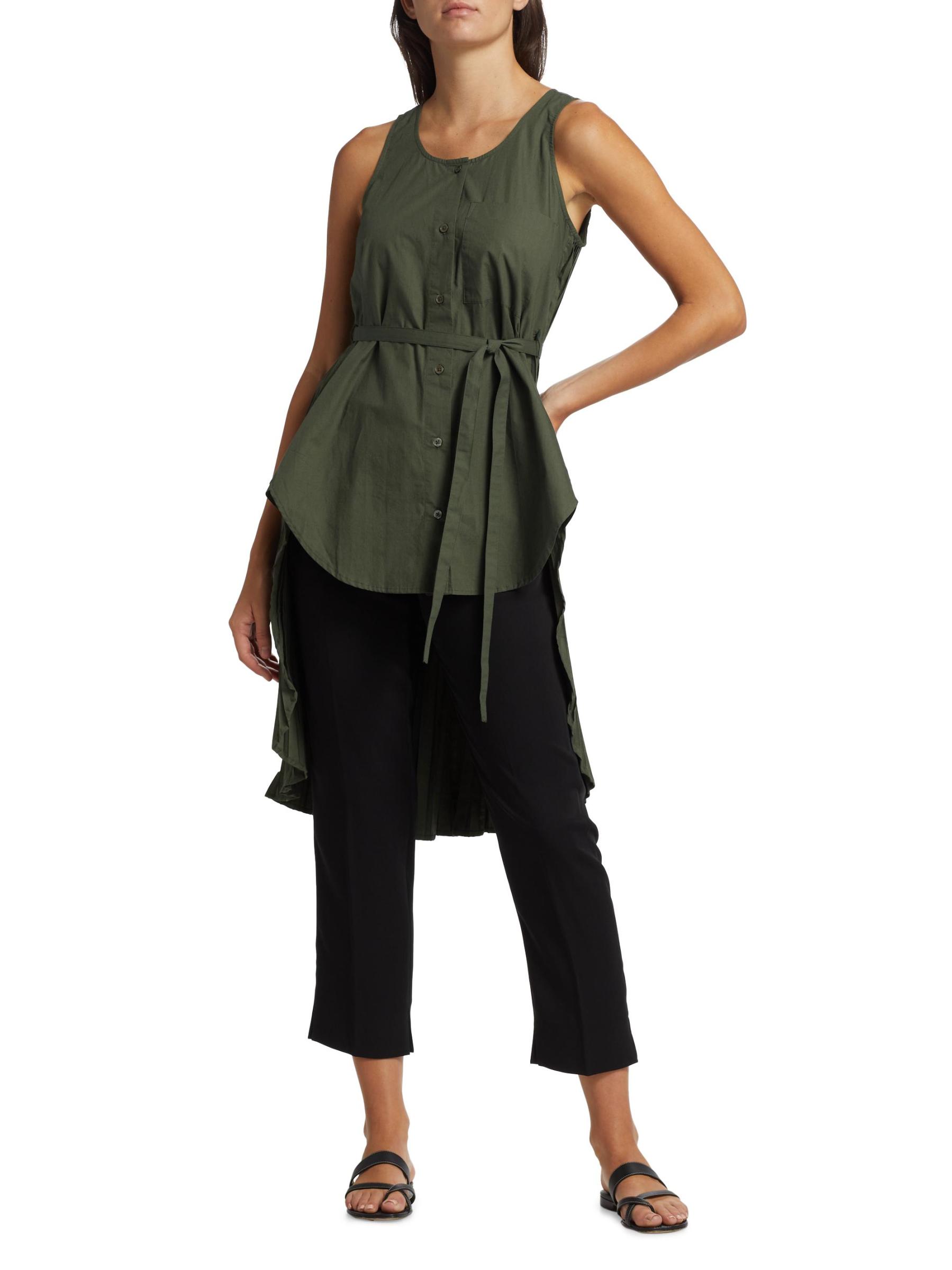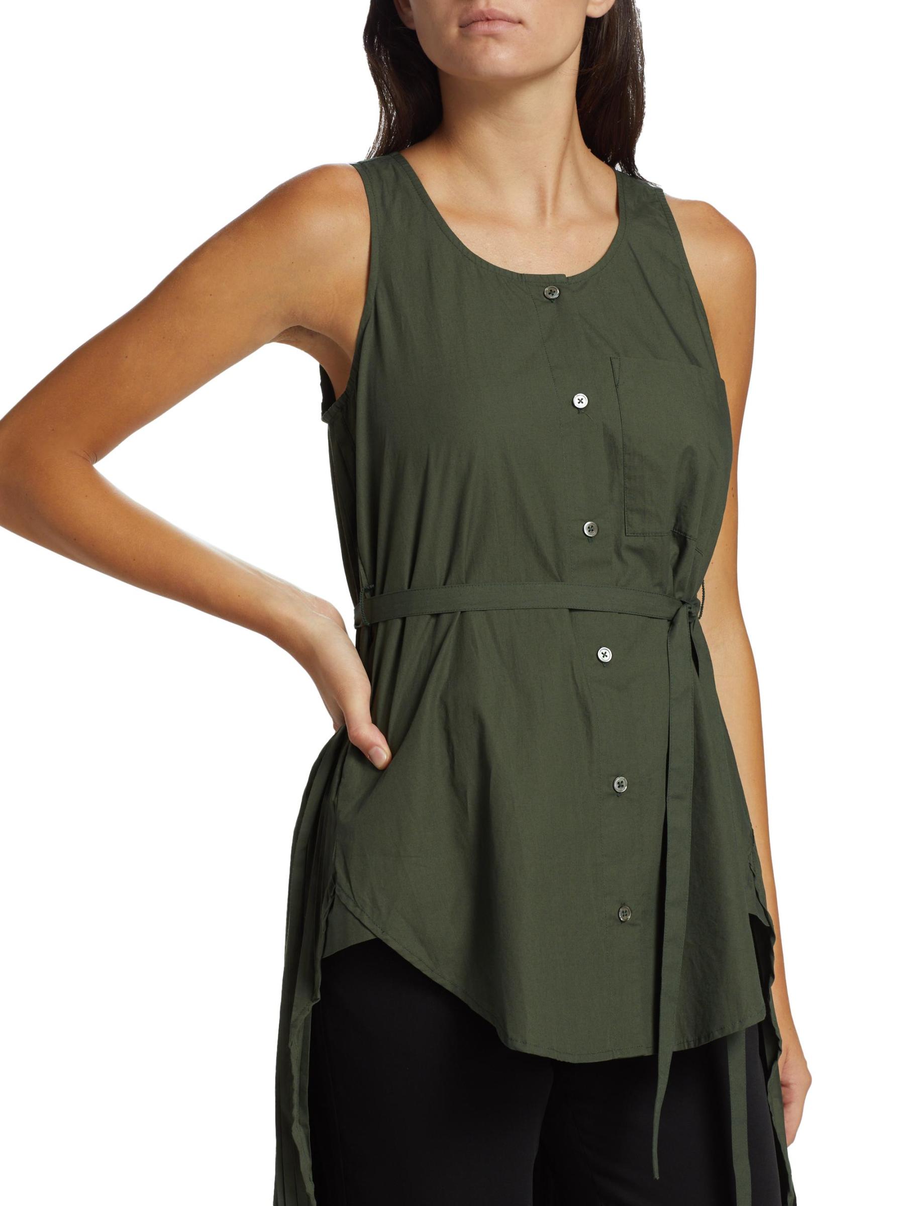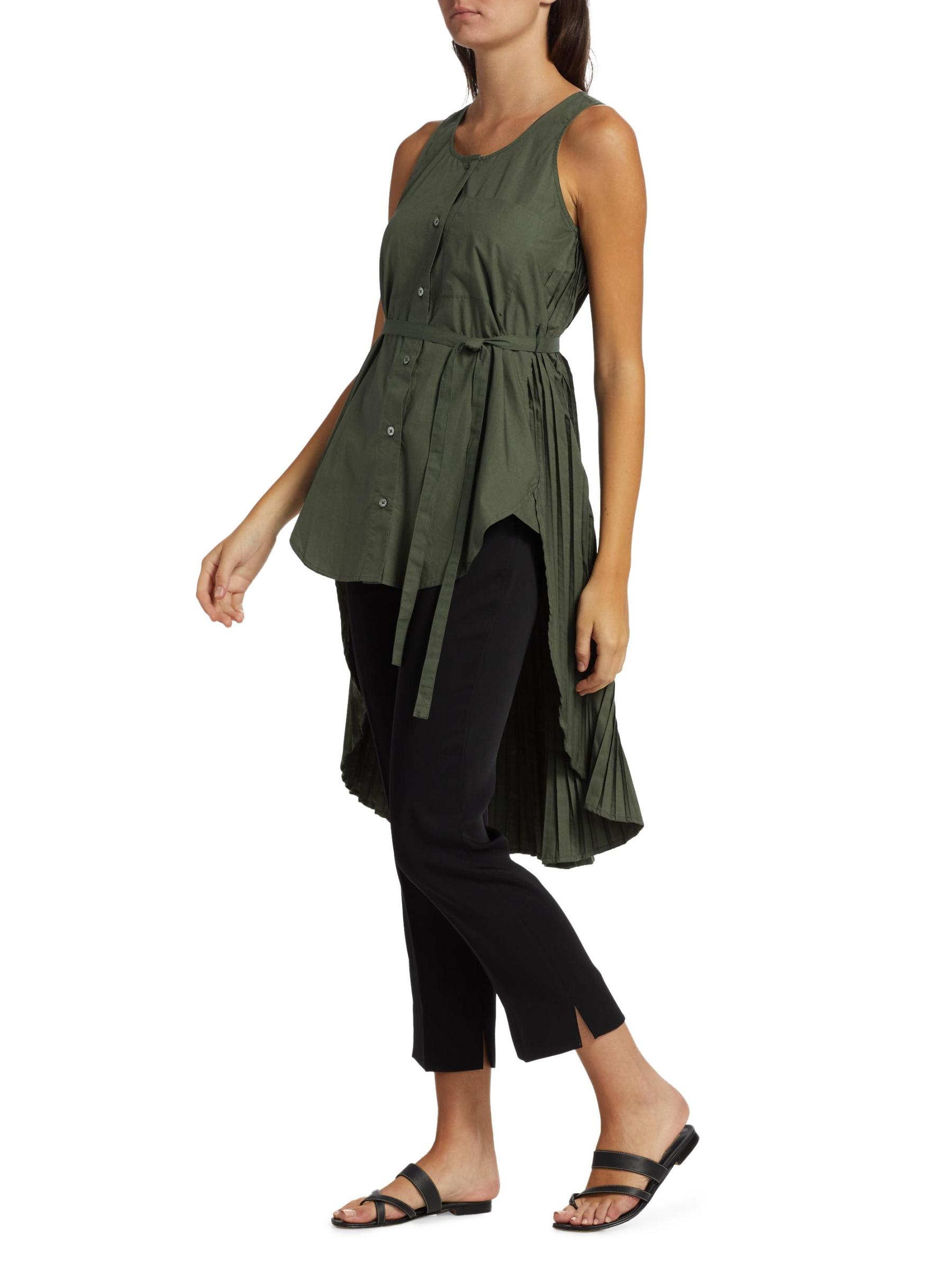 تتميز بلوزة Anika ذات الكعب العالي والمنخفض من Deveaux New York برقبة على شكل جوهرة وإغلاق بأزرار أمامية مع ظهر منسدل بثنيات. جيب خارجي على الصدر وحزام مطابق للربط الذاتي يكملان المظهر.رقبة على شكل جوهرة بدون أكمام إغلاق بأزرار أمامية حزام ربط ذاتي قابل للإزالة جيب خارجي على الصدر حافة عالية ومنخفضة على شكل ذيل قميص قطن بنسبة 100% المجموعة: 100% بوليستر تنظيف جاف مستوردة