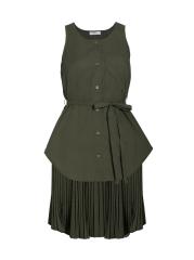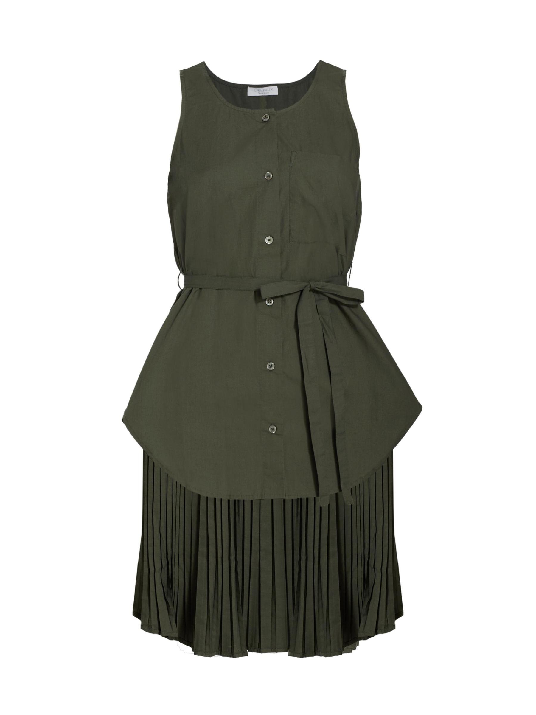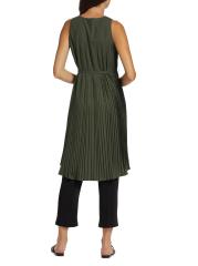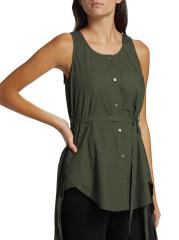 تتميز بلوزة Anika ذات الكعب العالي والمنخفض من Deveaux New York برقبة على شكل جوهرة وإغلاق بأزرار أمامية مع ظهر منسدل بثنيات. جيب خارجي على الصدر وحزام مطابق للربط الذاتي يكملان المظهر.