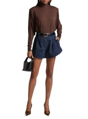 صُمم شورت Anissa من Ronny Kobo من الدنيم المزخرف في صورة ظلية عالية الارتفاع.