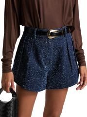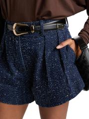شورت عالي الطول من الدنيم بنسيج أنيسة