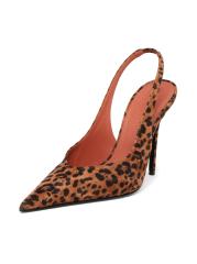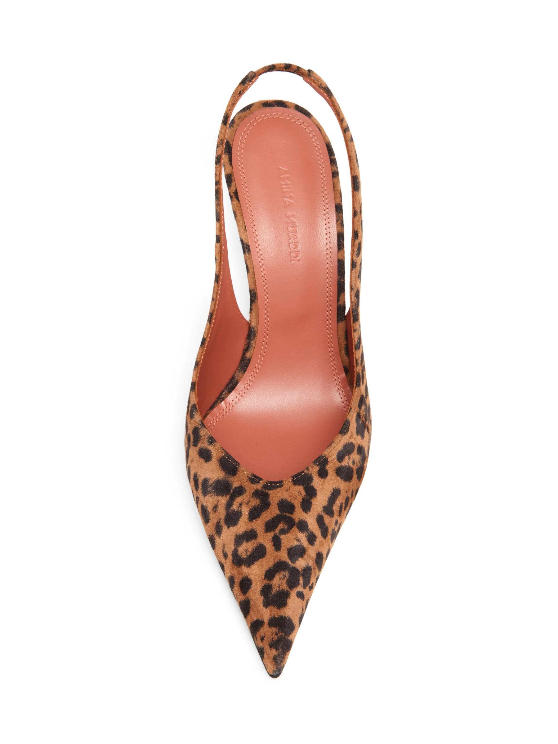 حذاء سلينغ باك من Anok بنقشة جلد الفهد من Amina Muaddi مصنوع في إيطاليا ويتميز بمقدمة مدببة وكعب خنجر.