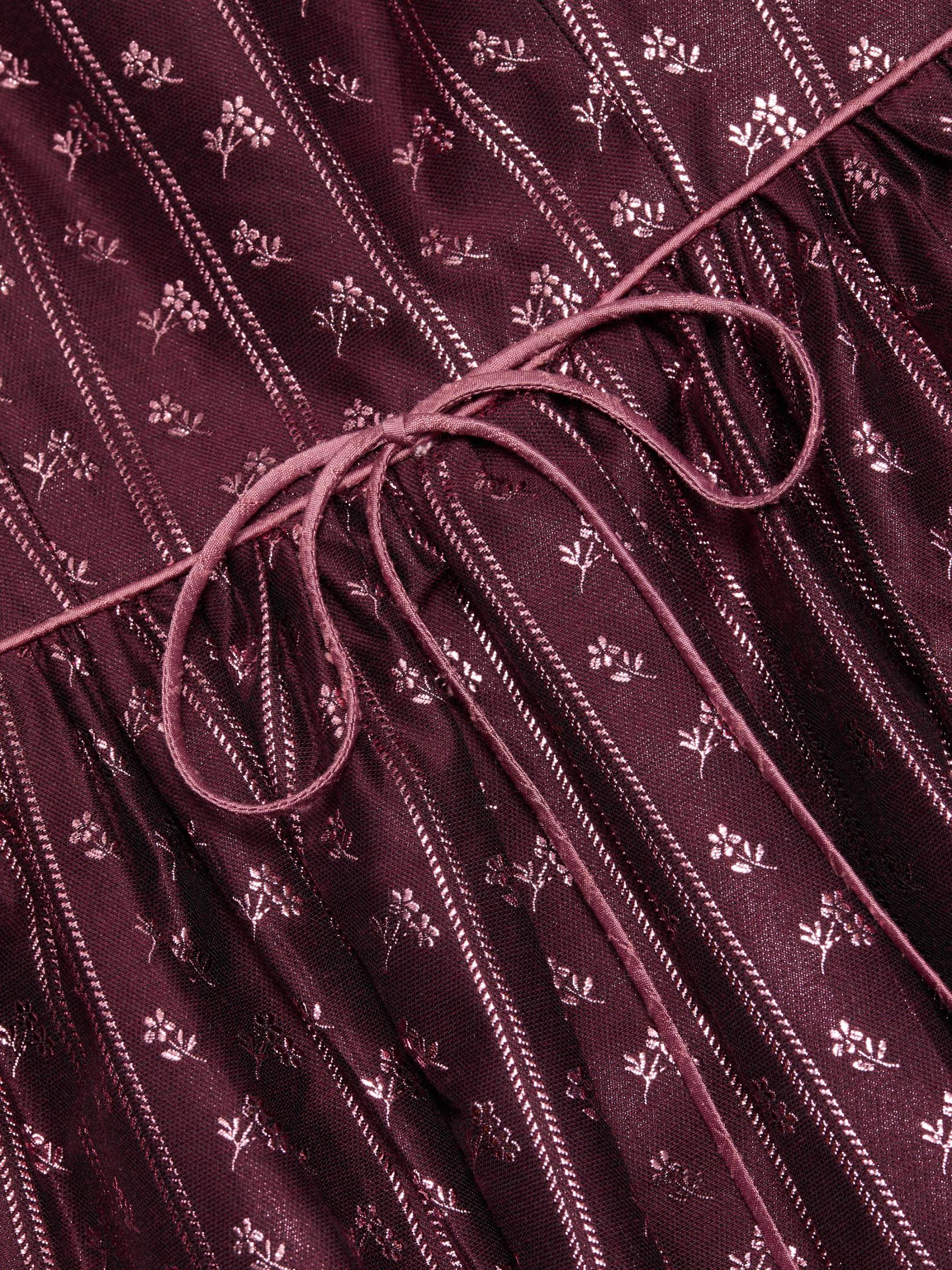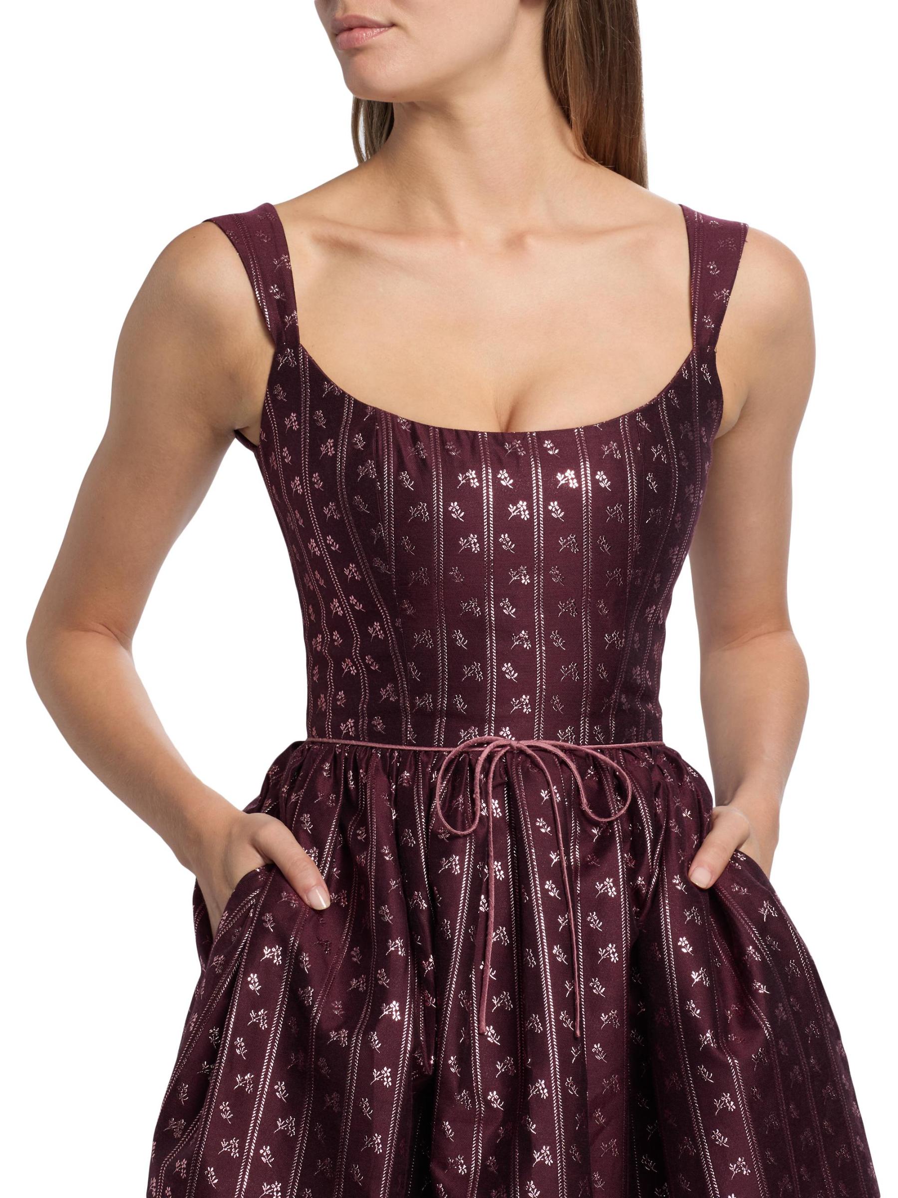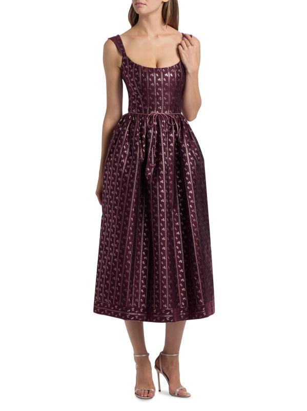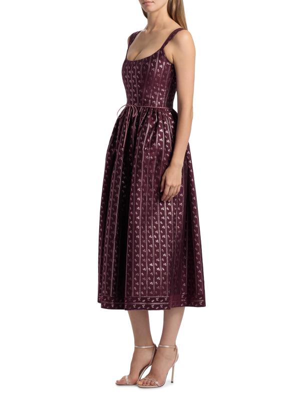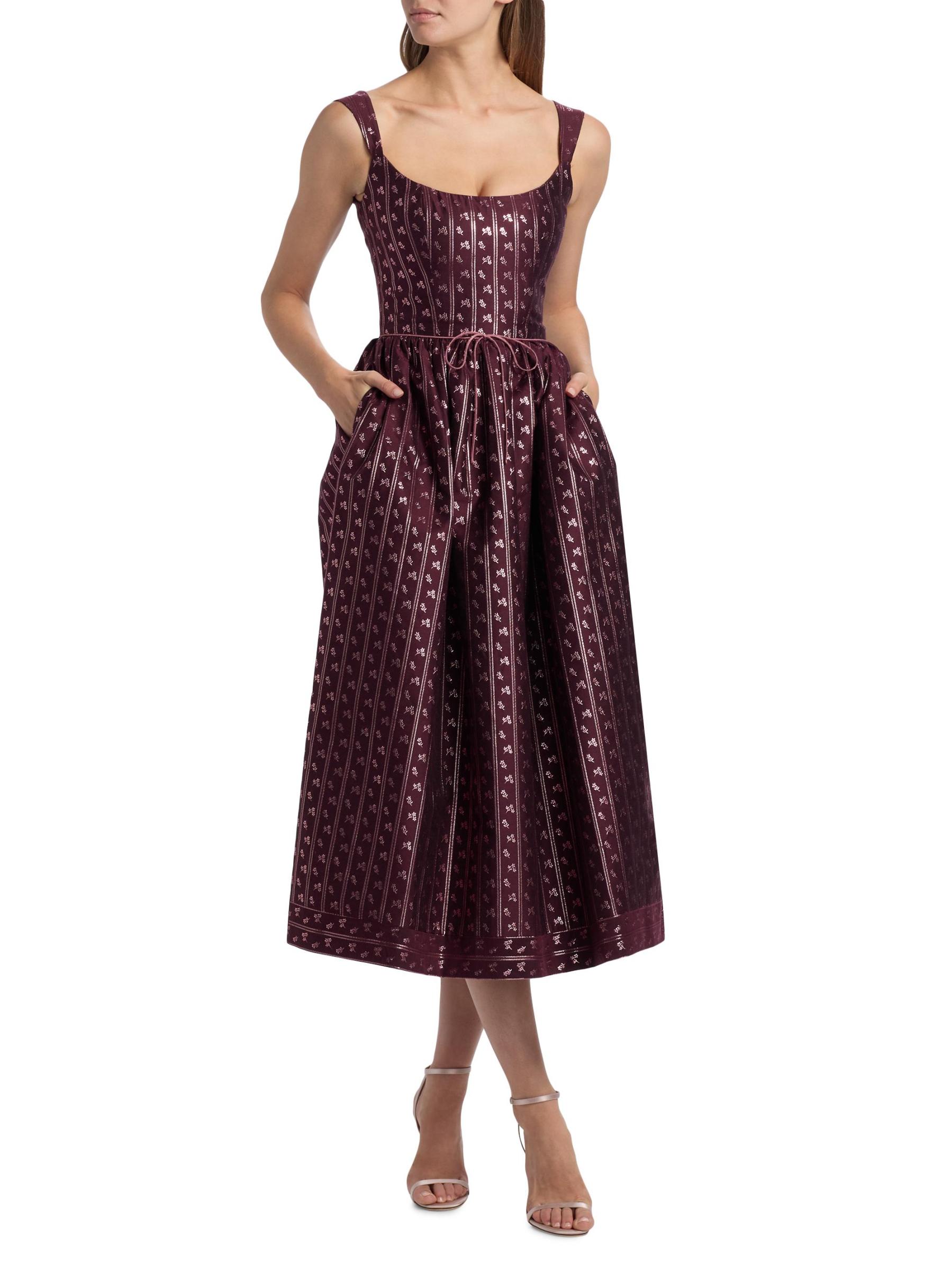 صُنع فستان ابل ميدي هذا من ماركاريان والمناسب من القماش المزركش في الولايات المتحدة الأمريكية، ويتميز برقبة دائرية وجيوب جانبية مفتوحة وتفاصيل فيونكة عند الخصر.