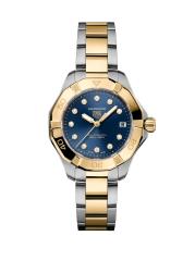 من مجموعة أكواريسر. تتميز ساعة TAG Heuer هذه المصنوعة من الذهب الأصفر عيار 18 قيراطًا والفولاذ المقاوم للصدأ بمينا بلون أشعة الشمس باللون الأزرق الداكن مع علامات الساعة الماسية البراقة وعرض التاريخ عند الساعة الثالثة. هذه الساعة المذهلة مقاومة للماء حتى 20 ATM، مما يجعلها مثالية للسباحة والرياضات المائية عالية التأثير والغوص.