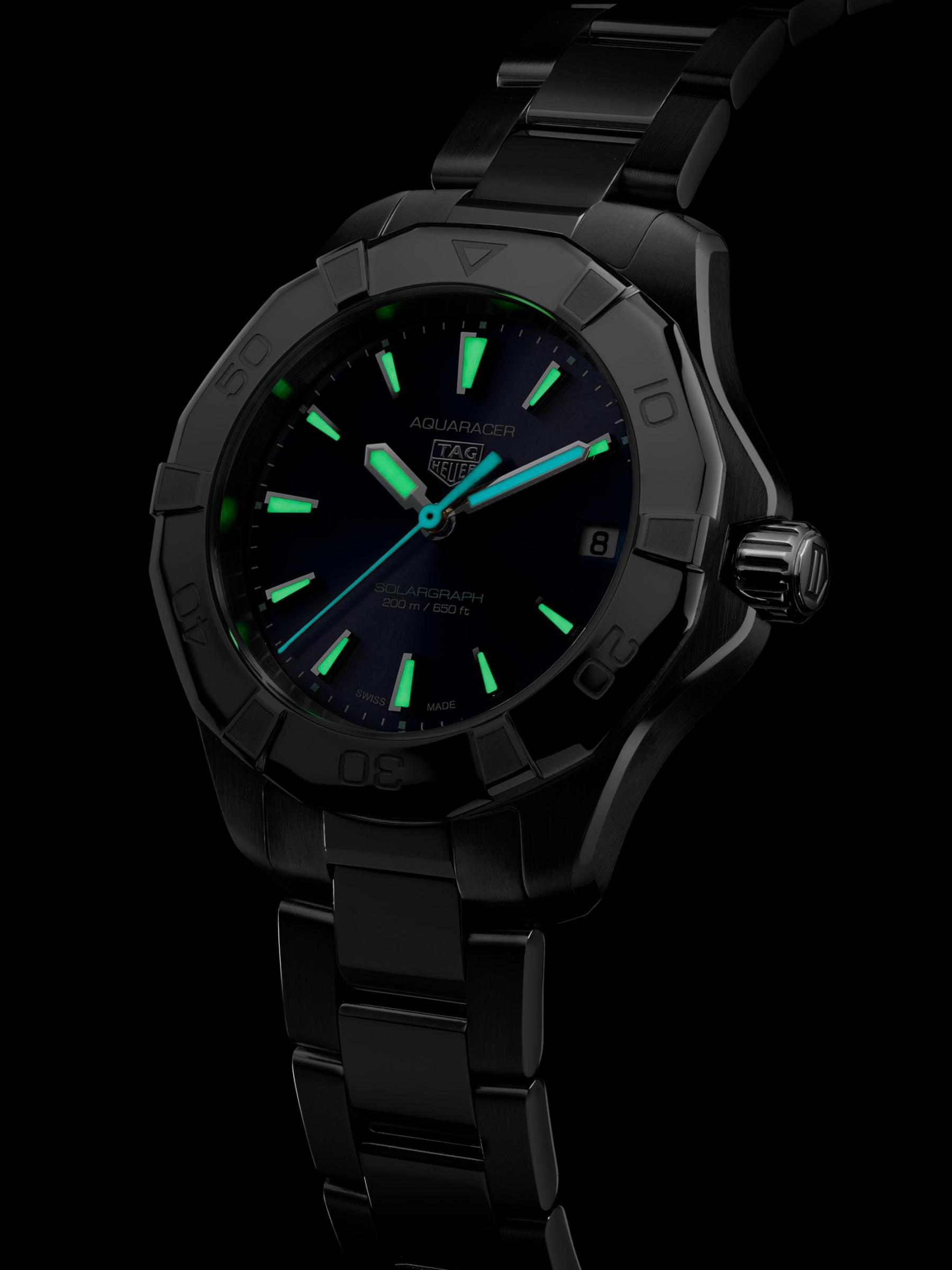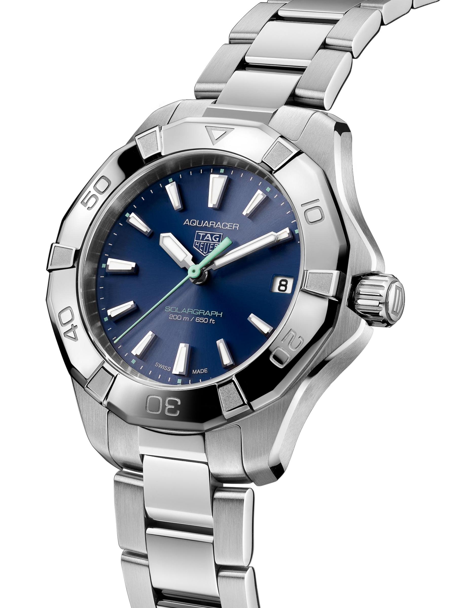 من مجموعة أكواريسر. تتميز ساعة TAG Heuer المصنوعة من الفولاذ المقاوم للصدأ بإطار دوار وقرص أزرق داكن يعمل بأشعة الشمس مع عرض التاريخ عند الساعة الثالثة. هذه الساعة المذهلة مقاومة للماء حتى 20 ATM، مما يجعلها مثالية للسباحة والرياضات المائية عالية التأثير والغوص.حركة سولارغراف إطار دوار كريستال ياقوتي قرص أشعة الشمس باللون الأزرق الداكن علامات الساعات والعقارب المليئة بتقنية Super-LumiNova® عرض التاريخ عند الساعة الثالثة اليد الثانية إطار وسوار من الفولاذ المقاوم للصدأ مشبك قابل للنشر صُنع في سويسرا