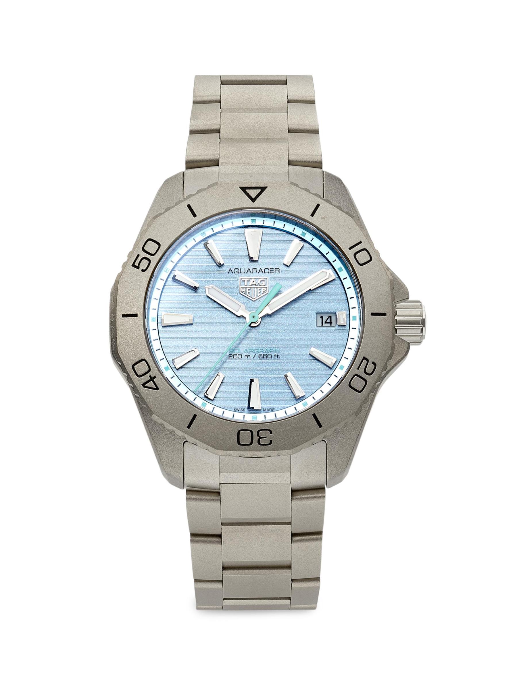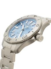 من مجموعة أكواريسر. تتميّز ساعة TAG Heuer المصنوعة من التيتانيوم بإطار دوّار ومينا أزرق اللون مع عرض للتاريخ عند الساعة الثالثة. هذه الساعة المذهلة مقاومة للماء حتى 20 ATM، مما يجعلها مثالية للسباحة والرياضات المائية عالية التأثير والغوص.