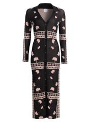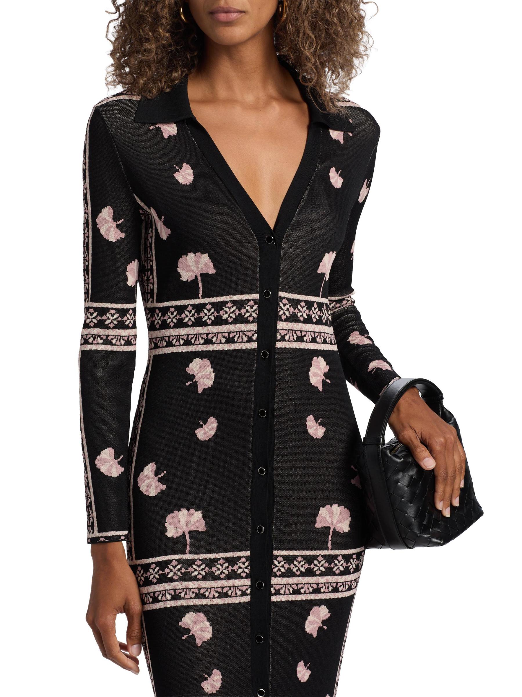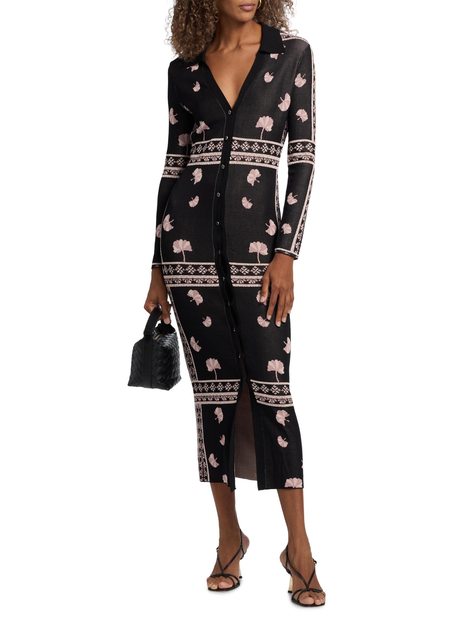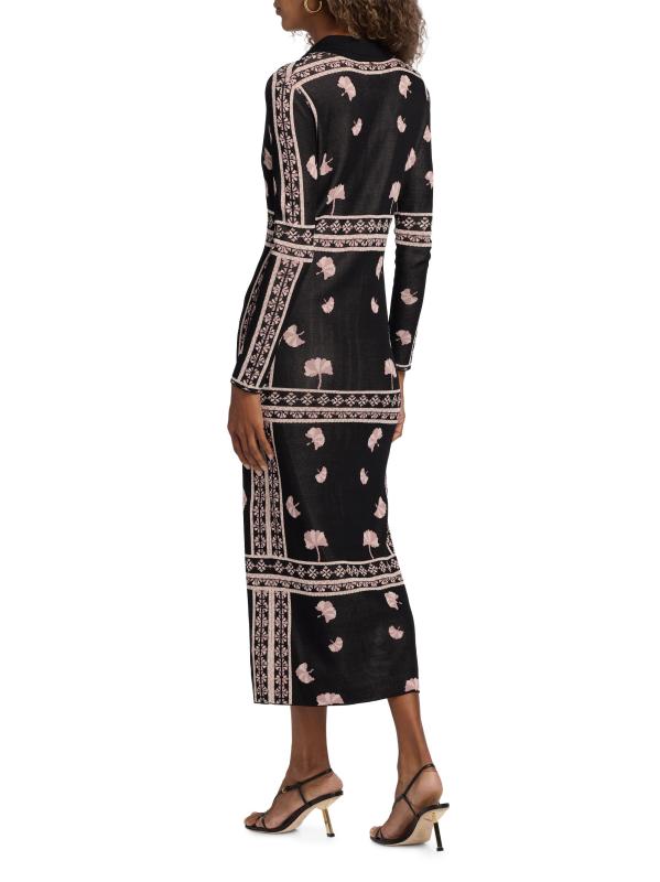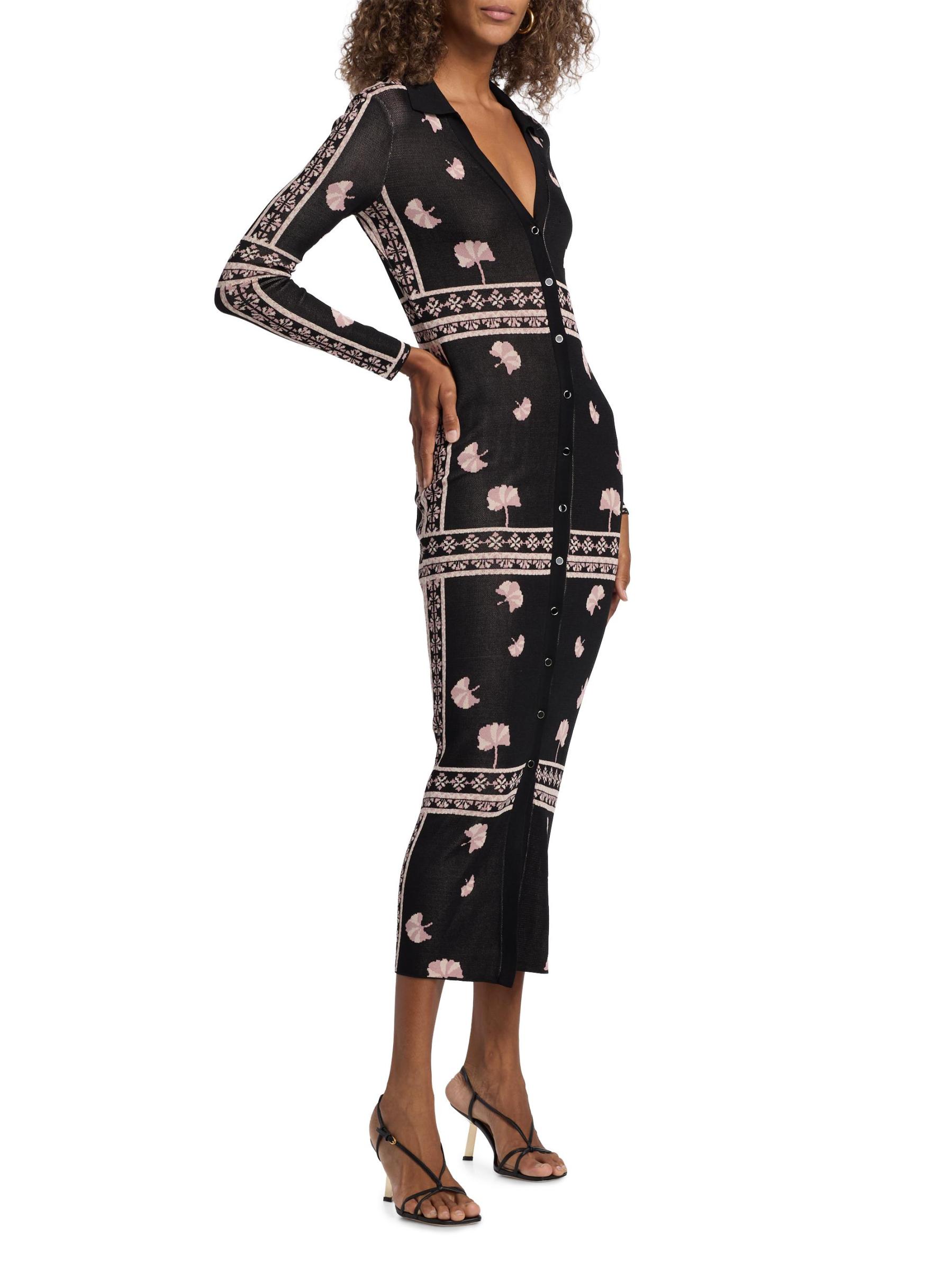يتميز فستان Aquila المتوسط من Misa Los Angeles بياقة واسعة وتصميم محبوك على شكل أضلاع. تُغلق هذه القطعة بأزرار أمامية.طوق سبريد أكمام طويلة إغلاق بأزرار أمامية 80% فيسكوز/ 20% نايلون تنظيف جاف مستوردة