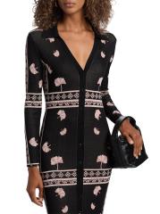 يتميز فستان Aquila المتوسط من Misa Los Angeles بياقة واسعة وتصميم محبوك على شكل أضلاع. تُغلق هذه القطعة بأزرار أمامية.