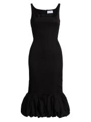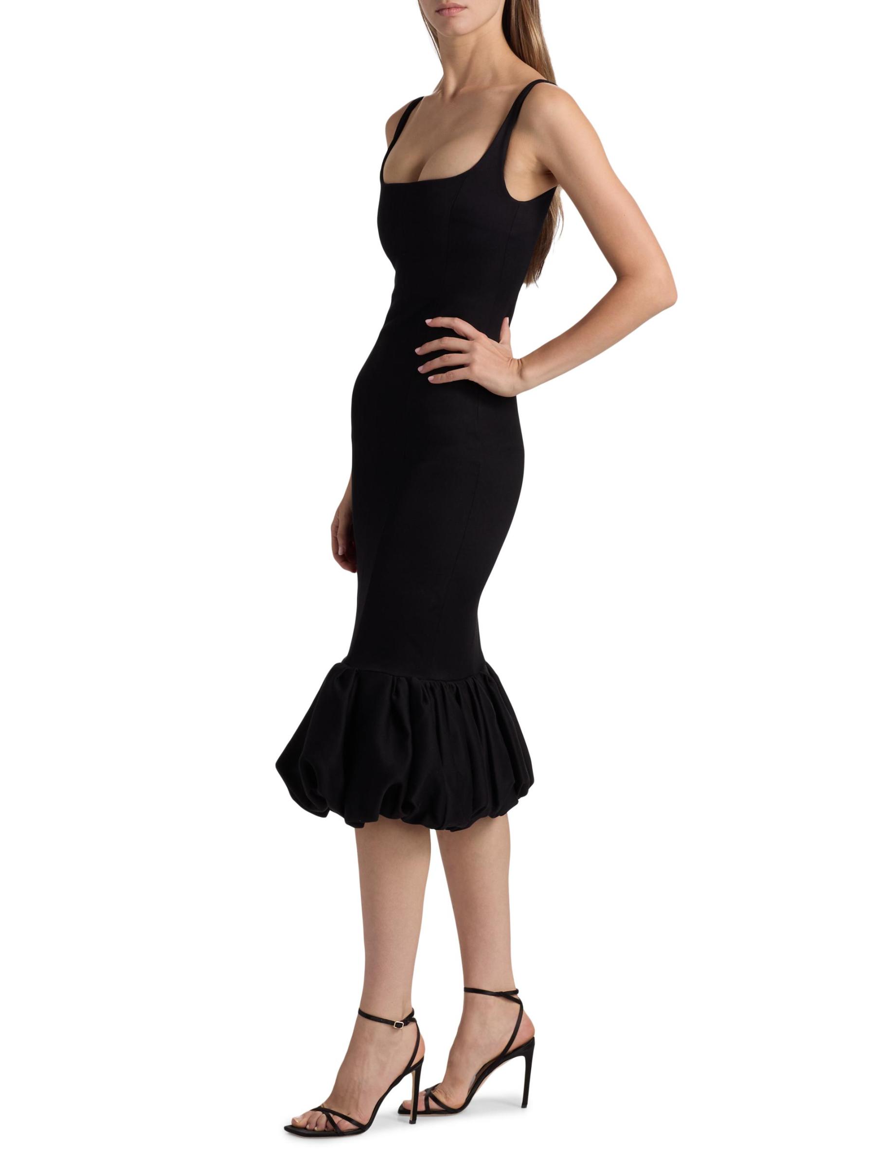 يُعزّز فستان كوكتيل Arceline من 16Arlington، المصنوع من مزيج ناعم من الصوف والقطن، الصورة الظلية الفضفاضة بتقويرة مربعة أنيقة وحاشية منسدلة.