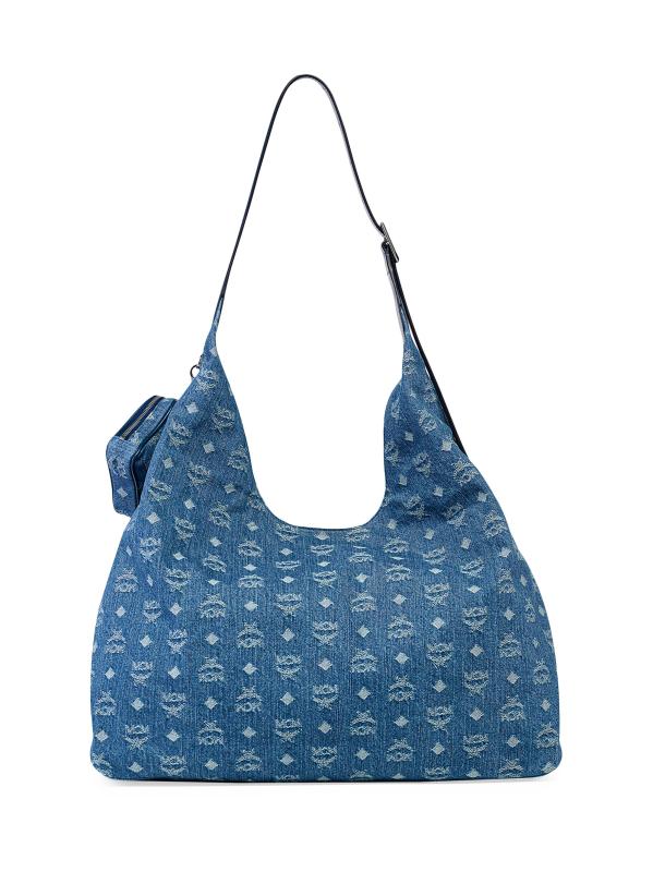 تتميز حقيبة كتف Aren denim shopper من MCM بتصميم جاكار بشعار Visetos وجيوب بسحّاب في الخارج.