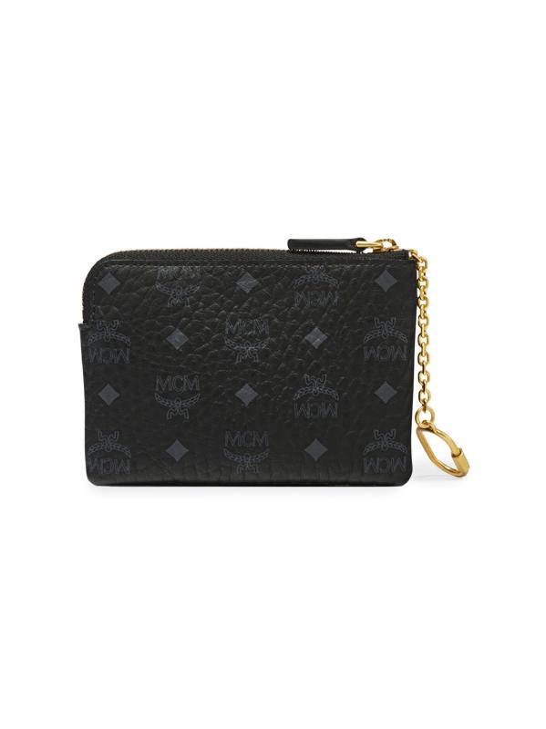 تتميز حافظة بطاقات Aren من MCM بطباعة شعار Visetos المونوغرام وحلقة مفاتيح ذهبية اللون على شكل سلسلة.حلقة مفاتيح إغلاق بسحّاب فتحات البطاقات مستوردة
