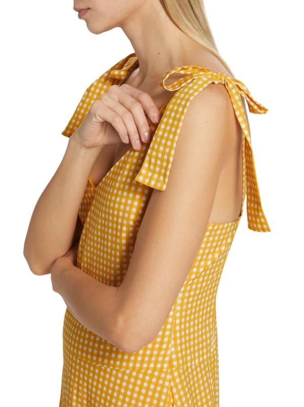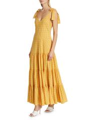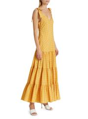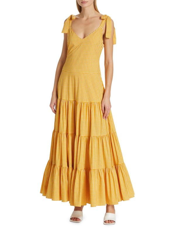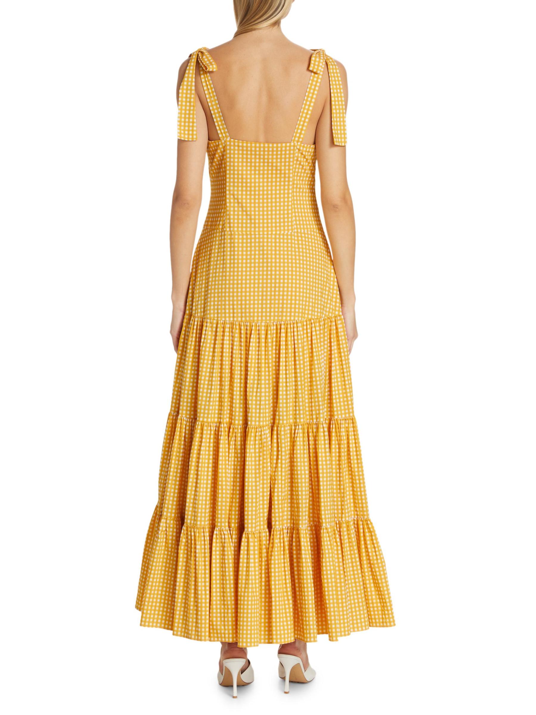 يتميز فستان أريانا ماكسي من CAROLINE CONSTAS بتصميم متدرج عند الخصر المنخفض. يُكمل هذا النمط المصنوع من مزيج القطن القطني المصنوع من القماش القطني برقبة على شكل حرف V وأشرطة برباط على الكتف.