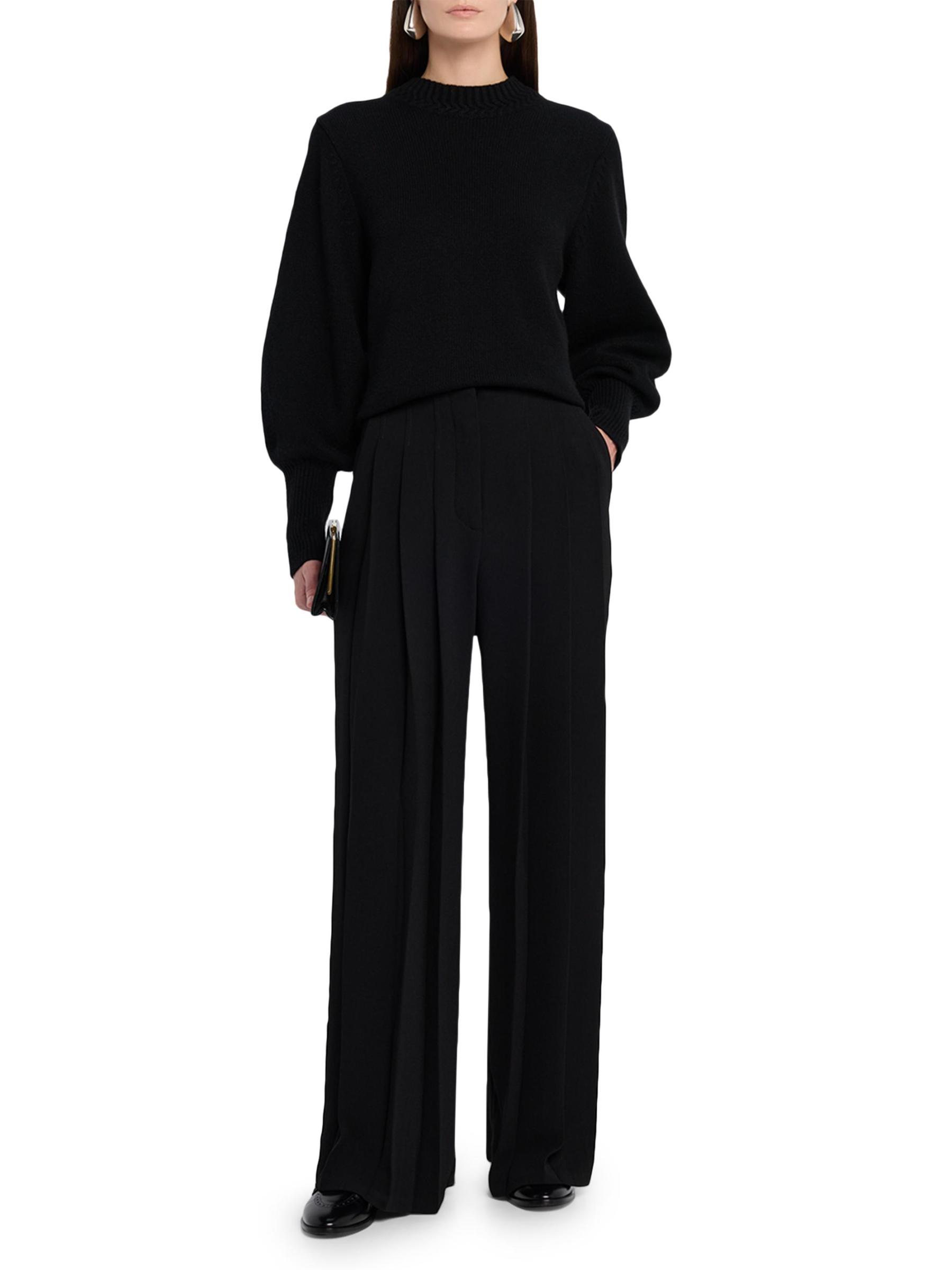 يتميز بنطال Asselby من Acler، المُصمم بطيات أمامية، بتصميم عصري واسع الساق مع خياطة ناعمة.