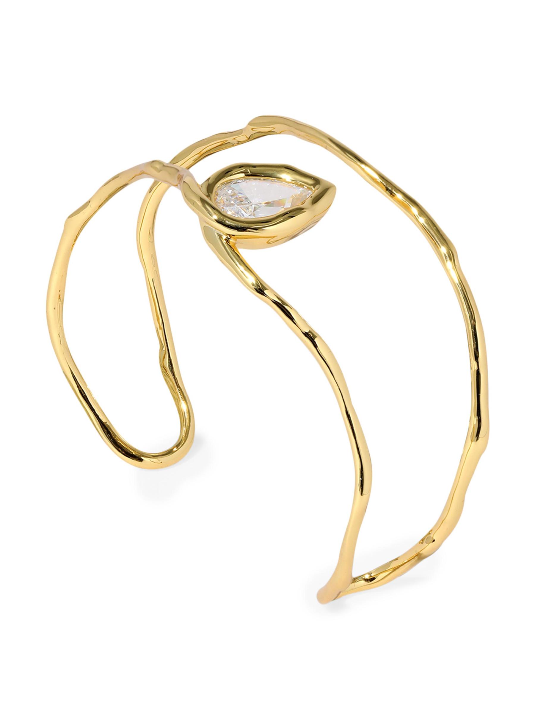 من مجموعة أستيراليس. يتميز سوار Asterales من Alexis Bittar بملمس مصهور. يتمركز الطراز المفتوح المطلي بالذهب عيار 14 قيراطًا بحجر الزركونيا المكعب اللامع المقطوع بالكمثرى.