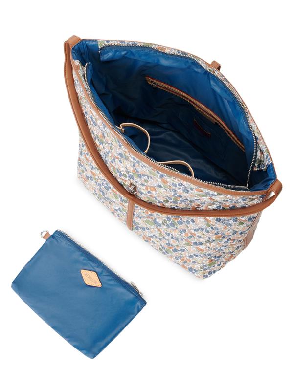 حقيبة الكتف Astor hobo من MZ Wallace مصنوعة من القماش المبطن والمطبوع بالورود والجلد بتصميم واسع وجيوب داخلية متنوعة.