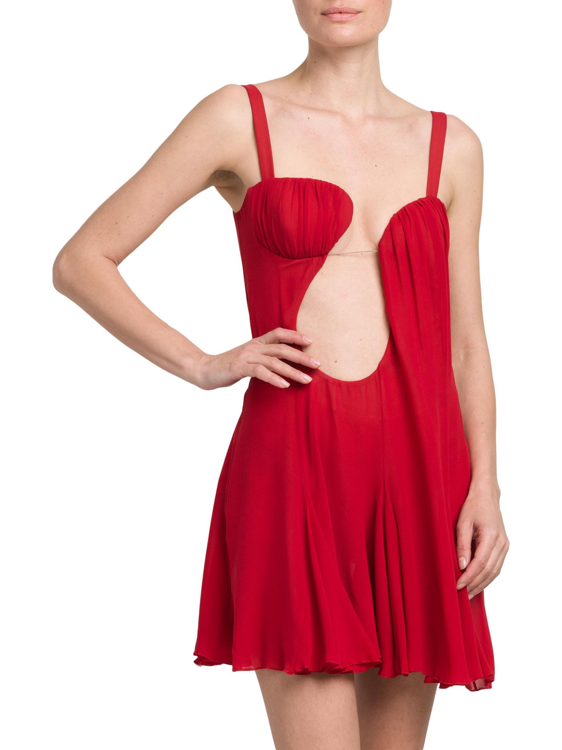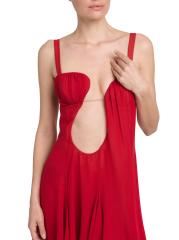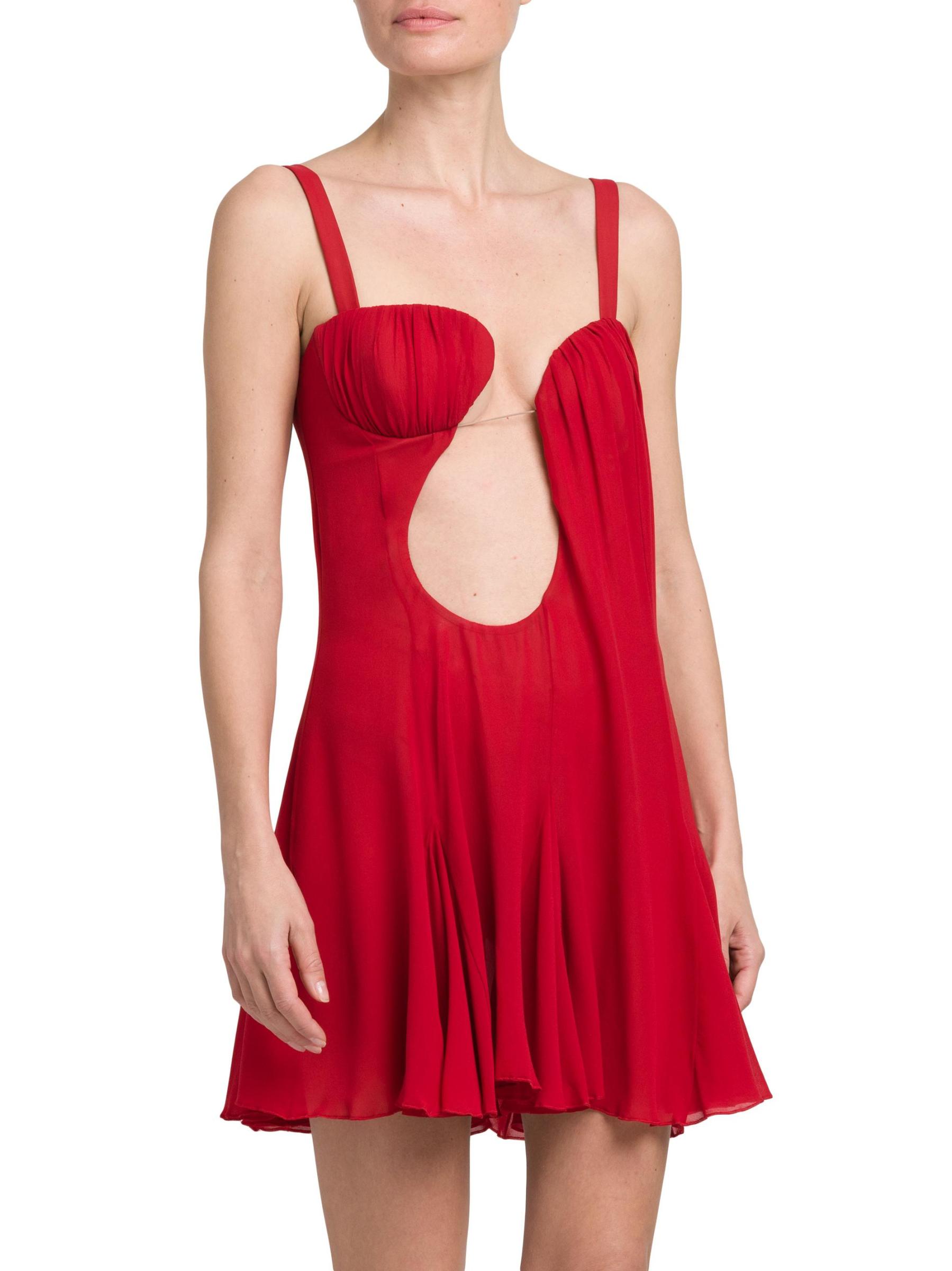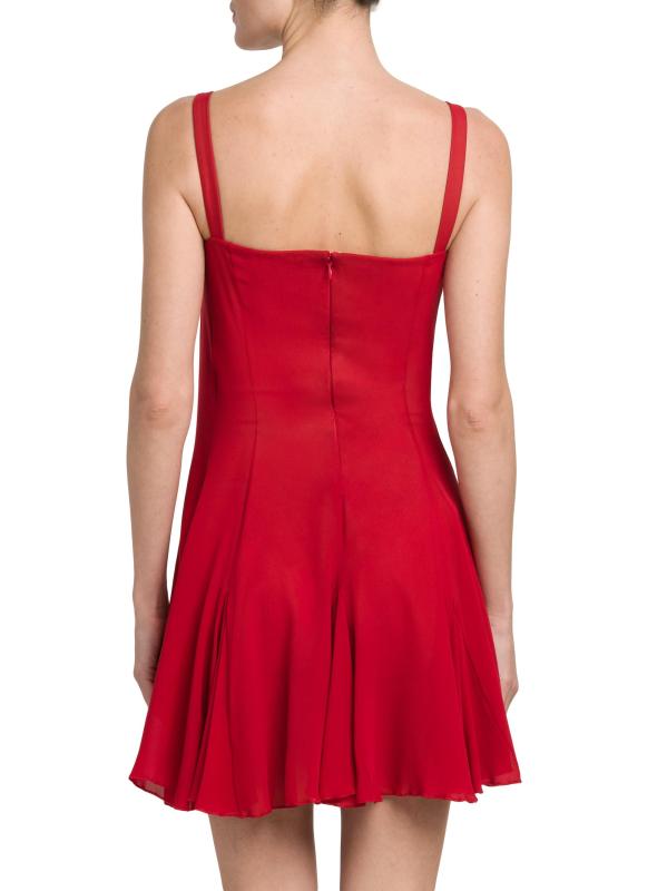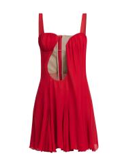 يتميّز فستان Nensi Dojaka القصير بدون أكمام والمصنوع من الحرير الفاخر برقبة رومنسية غير متماثلة ولوحة شفافة في الأمام.