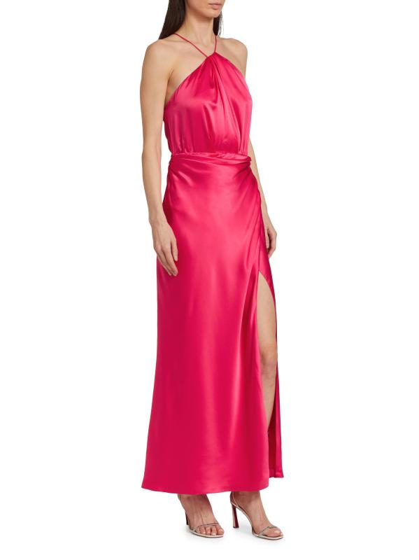 فستان ماكسي من الحرير هالتر غير متماثل