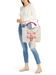 يمكن حمل هذه الحقيبة المصنوعة من القماش يدويًا أو ارتداؤها على الكتف، وذلك في صورة ظلية متهدلة مع تصميم فيونكة مطوية.حزام يلتف حول الجسم قابل للتعديل وقابل للإزالة مقبض علوي مزدوج بلوزة مفتوحة مع إغلاق برباط ذاتي مقصورة داخلية واحدة جيب داخلي بسحّاب قطن/كتان البطانة: جلد الزخرفة: بوليستر صُنع في إيطاليا