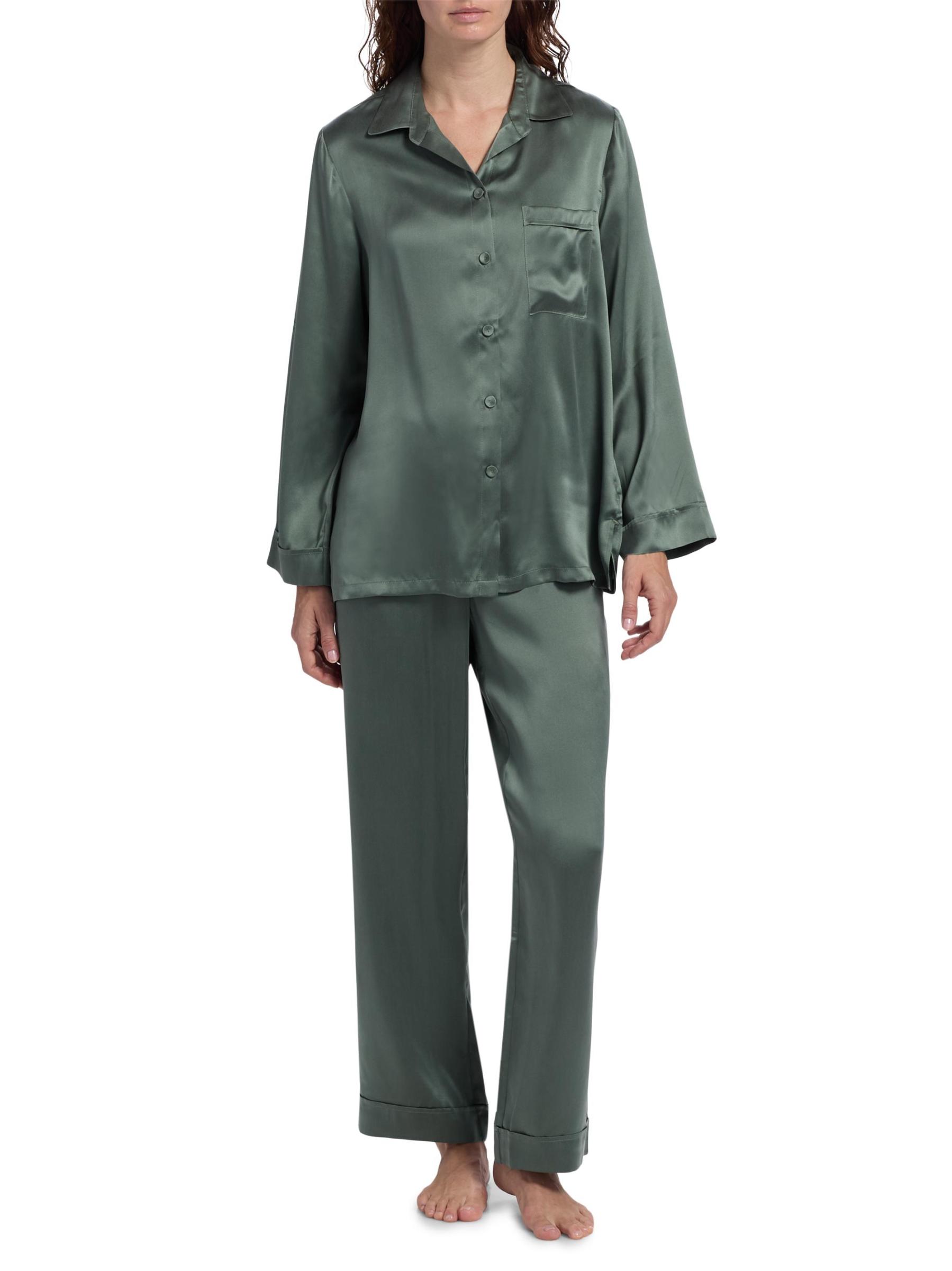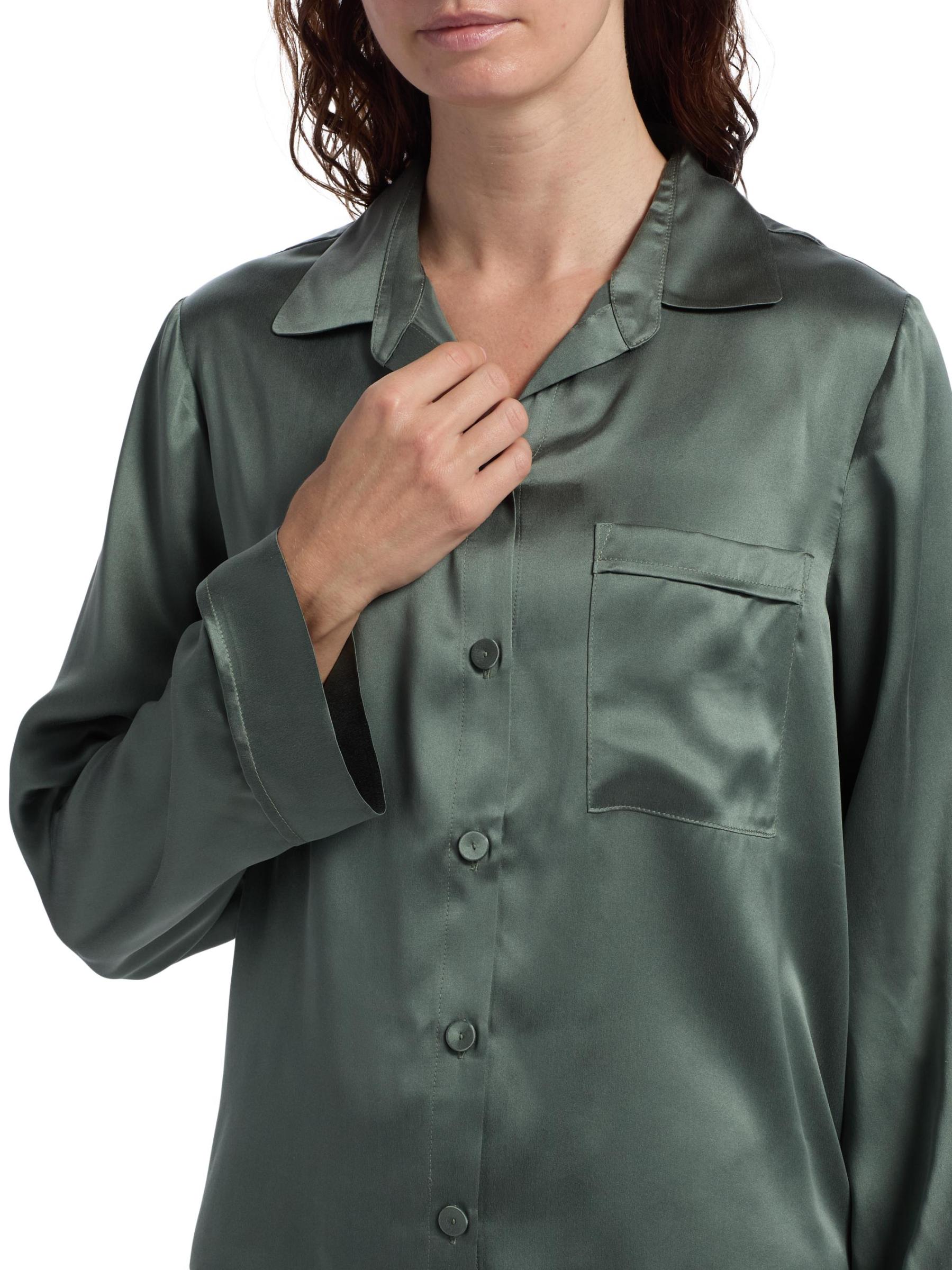 بيجامات أودري من بابينيل مصنوعة من الحرير اللامع القابل للغسل ومقطعة في صورة ظلية مريحة. حرير التوت بنسبة 100%. يُغسل في الغسالة. مُستورَد.