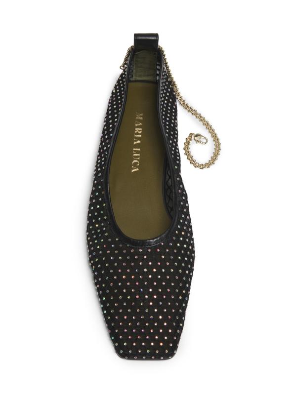 تتميّز أحذية الباليه هذه المصنوعة من قماش Maria Luca Augusta المصنوع من شبكة مفصّلة بالكريستال بحزام سلسلة ذهبي قابل للإزالة عند الكاحل.