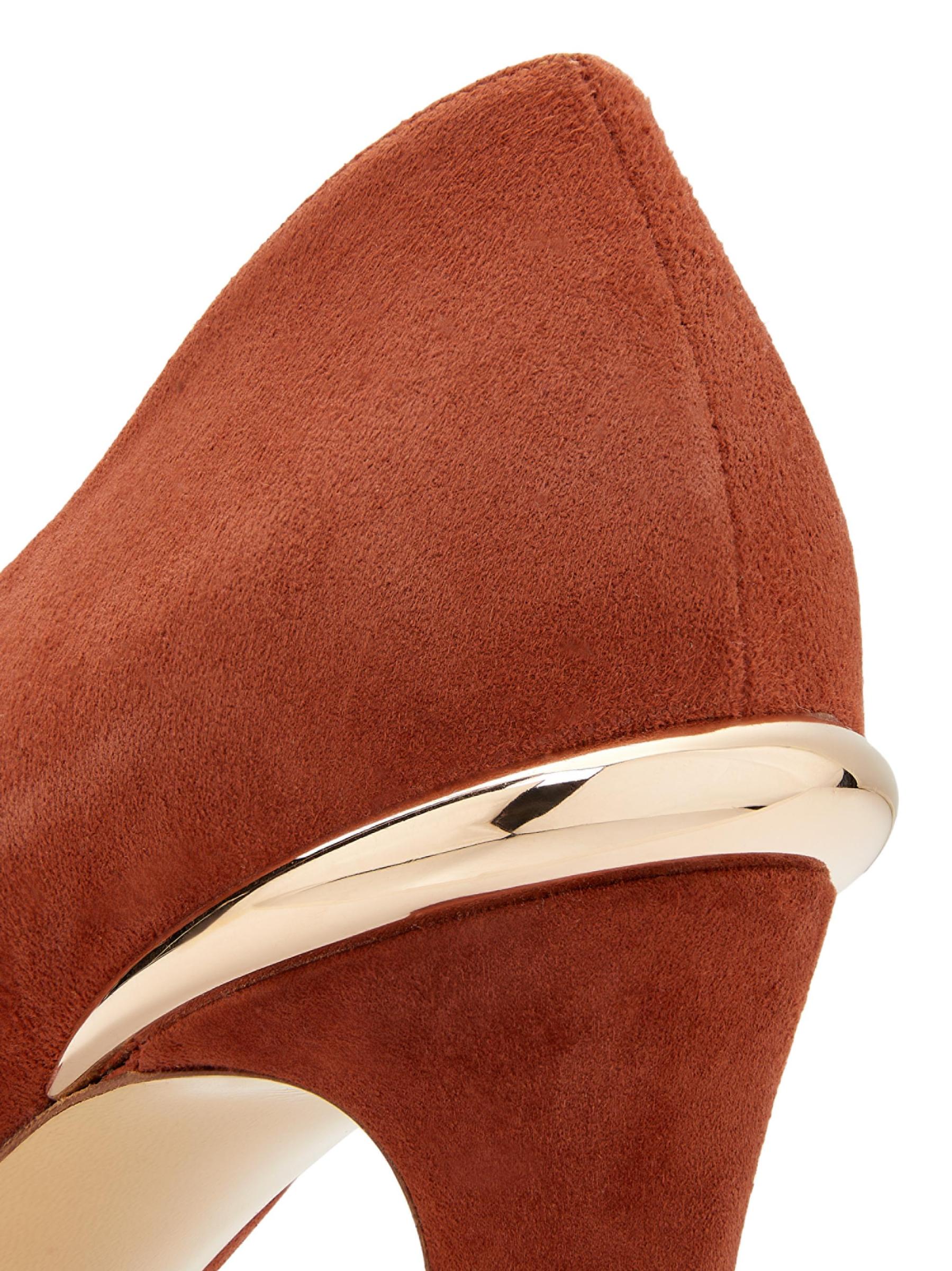 تتميّز أحذية أورا ذات الأصابع المدببة من غابرييلا هيرست المصنوعة من الجلد المدبوغ بتفاصيل فريدة من نوعها باللون الذهبي على الكعب العريض.