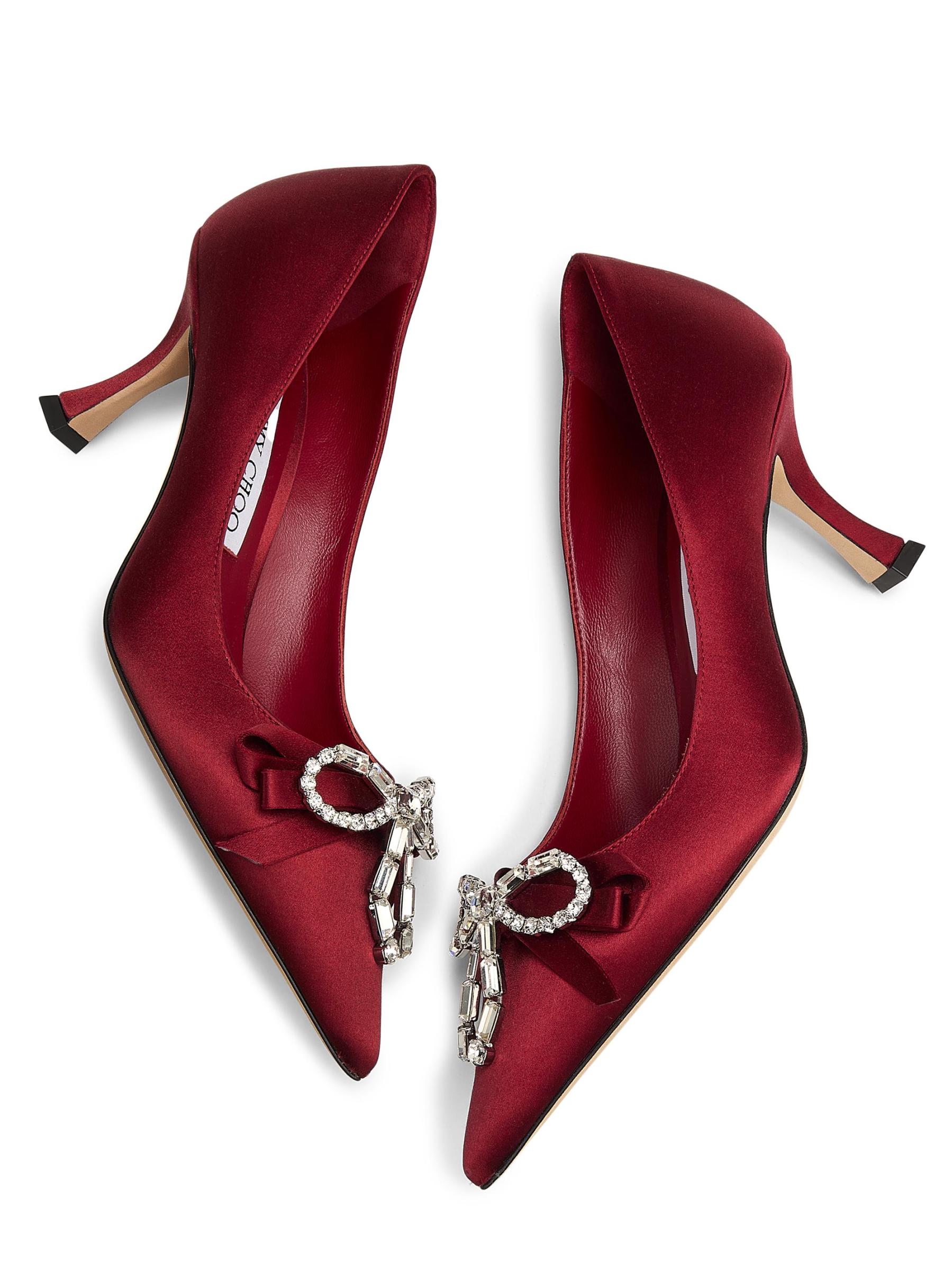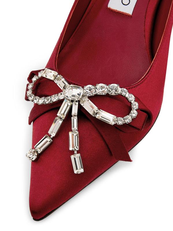 حذاء Auria هذا المصنوع من الساتان من جيمي تشو مصنوع من الساتان ويتميز بمقدمة مدببة وتفاصيل فيونكة مزينة بالكريستال اللامع. تم وضع هذا الزوج فوق كعب 70 مم.