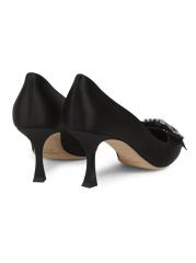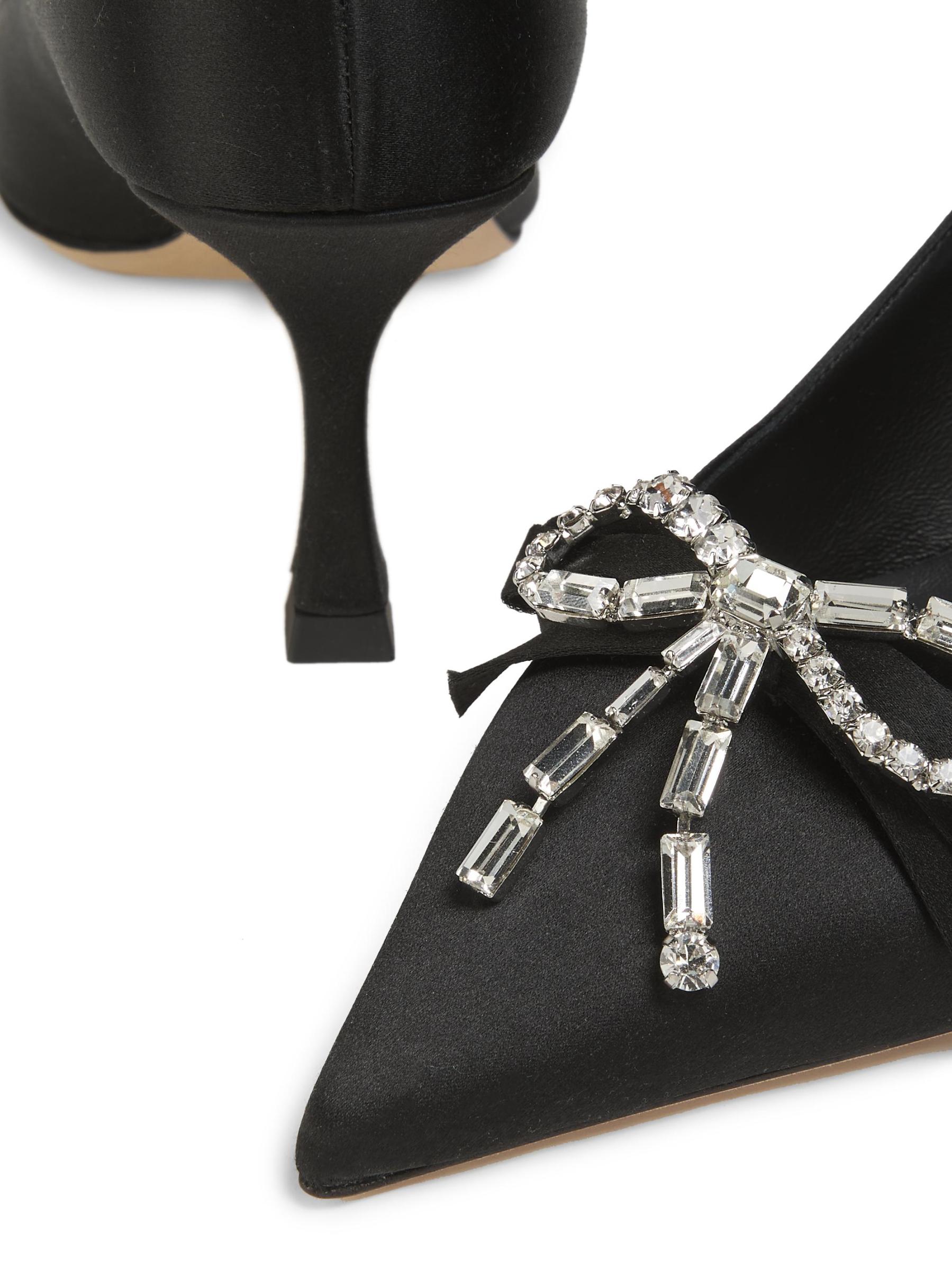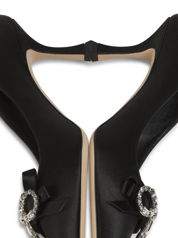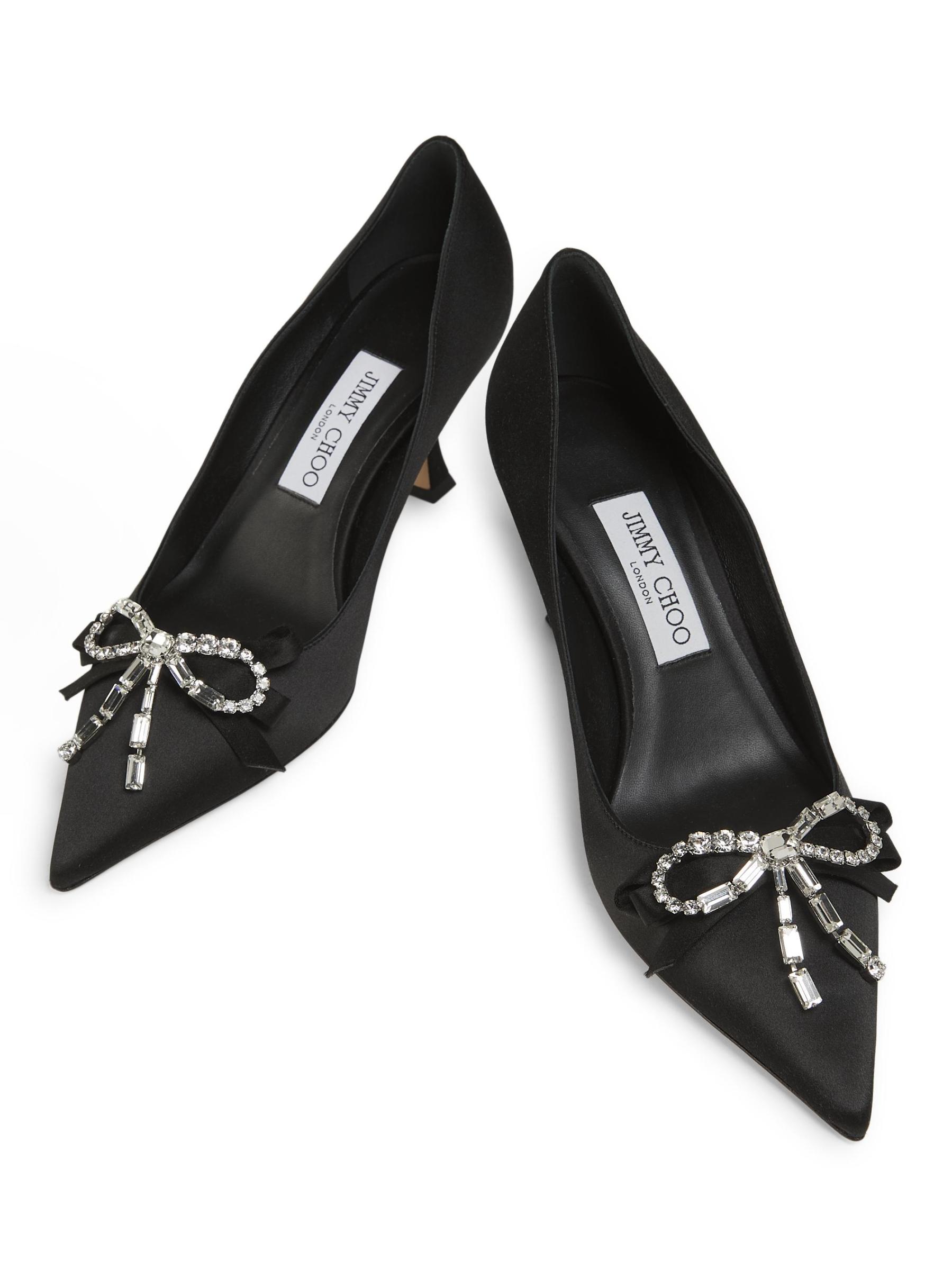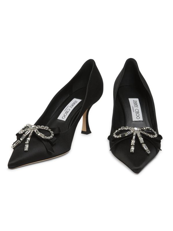 تتميّز أحذية Auria المصنوعة من الساتان من Jimmy Choo بفيونكة كريستالية.