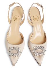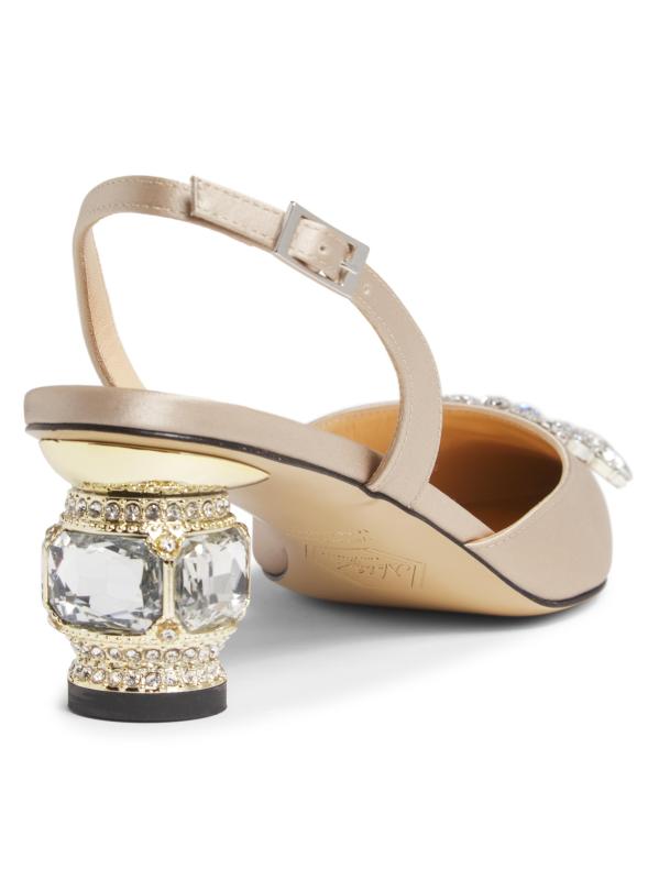 حذاء Aurum slingback من Nalebe مصنوع من الساتان الفاخر مع كعب مزين بالكريستال ومقدمة مدببة.
