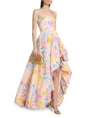 يتميّز فستان Ava faille من As It May المُزين بنقشة الزهور بتقويرة رومنسية بدون حمالات وحاشية عالية منخفضة.