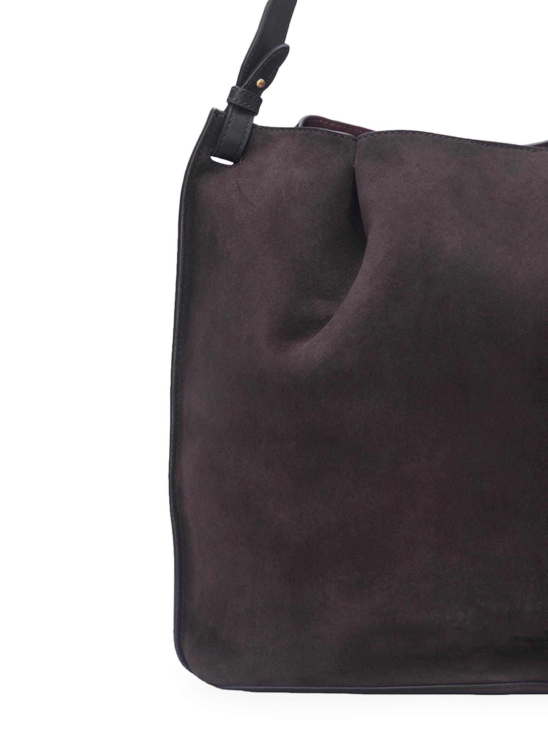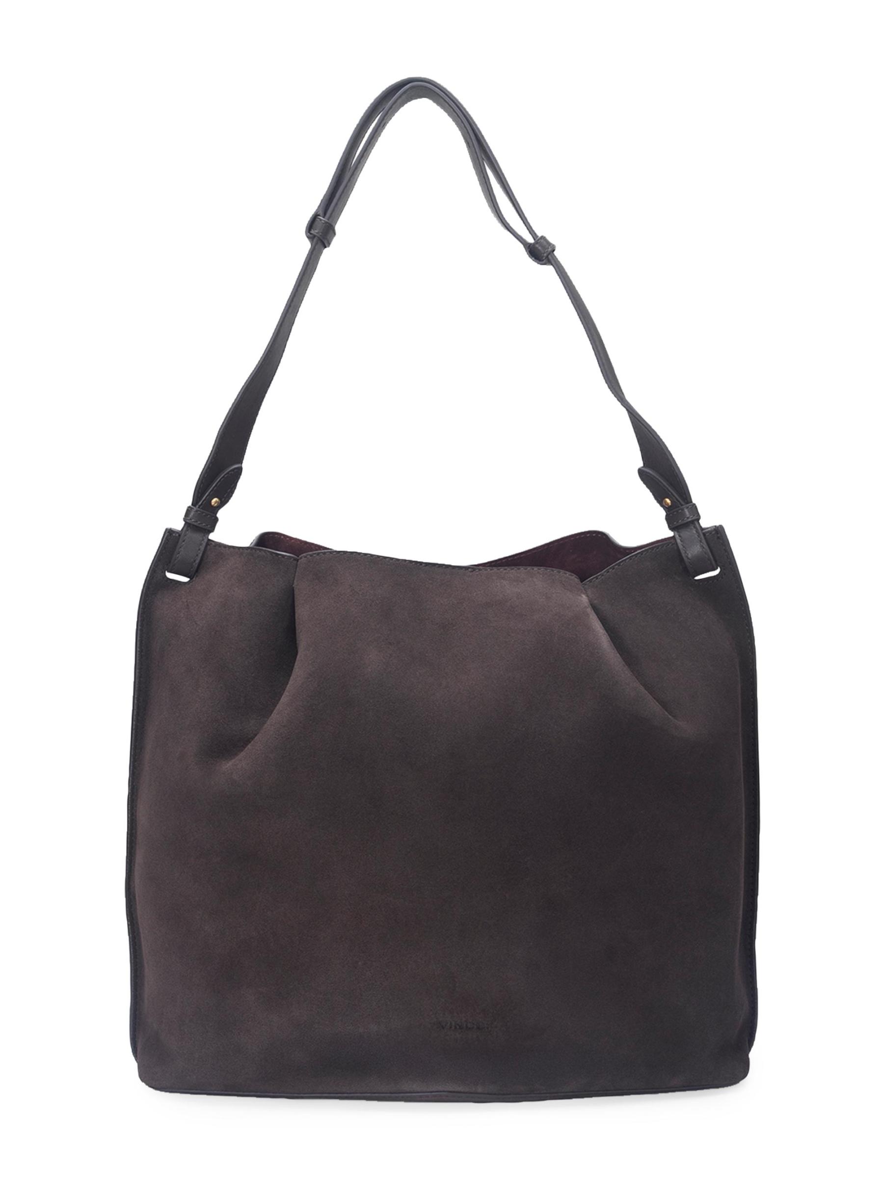 حقيبة Ava bucket من Vince مصنوعة من الجلد المدبوغ ذي الألوان المتناسقة والجلد لأناقة بسيطة وتتميز بشعار أمامي منقوش مع قرصة مزدوجة.حزام كتف قابل للتعديل والإزالة الجزء الداخلي: جيب واحد بسحّاب قفل مغناطيسي جلد سويد/جلد البطانة: جلد سويدي مستوردة