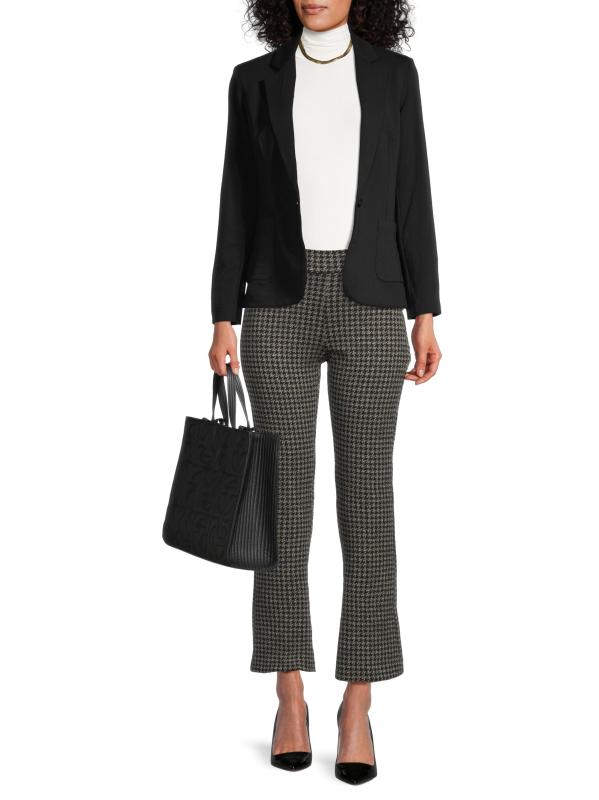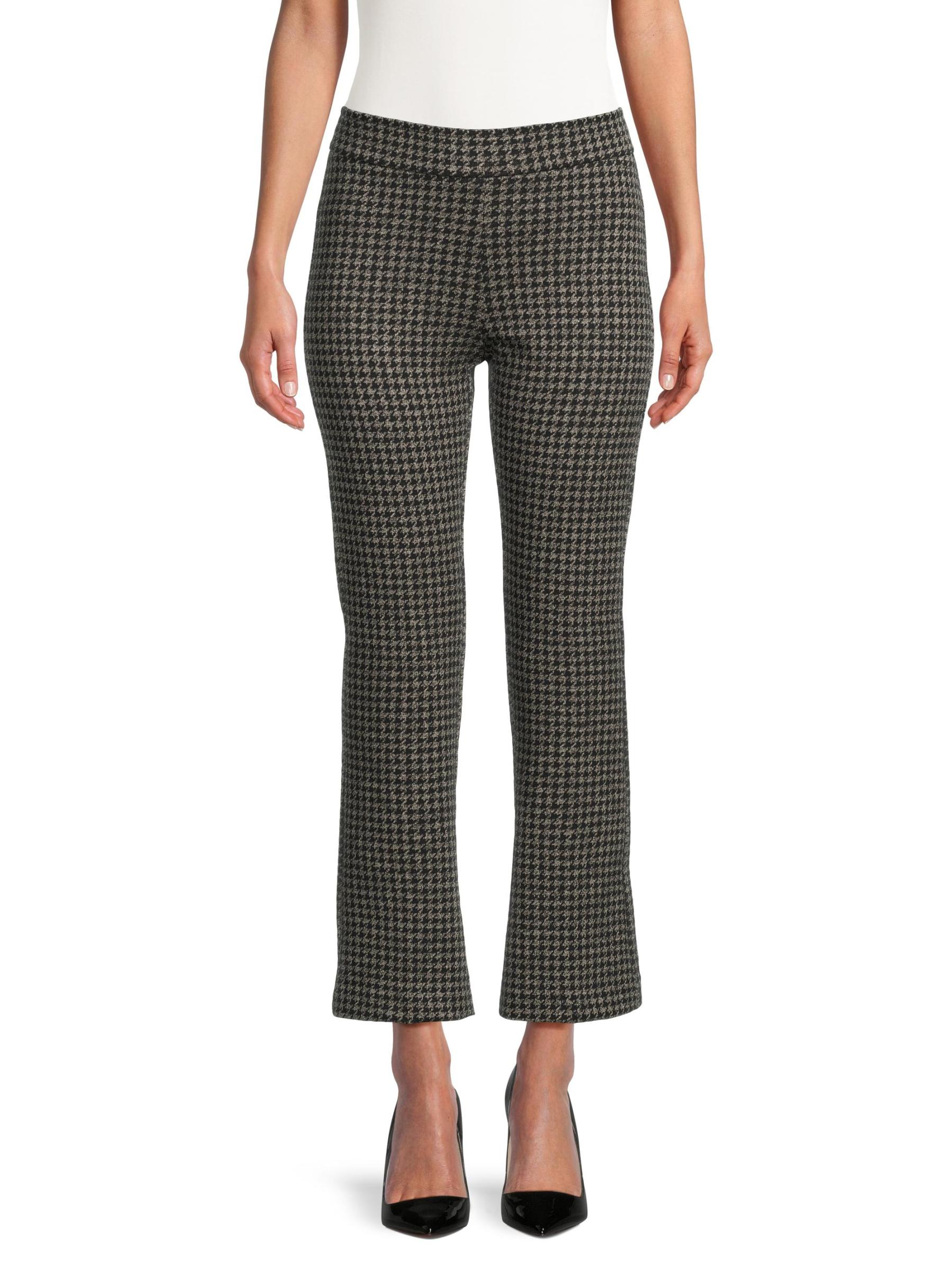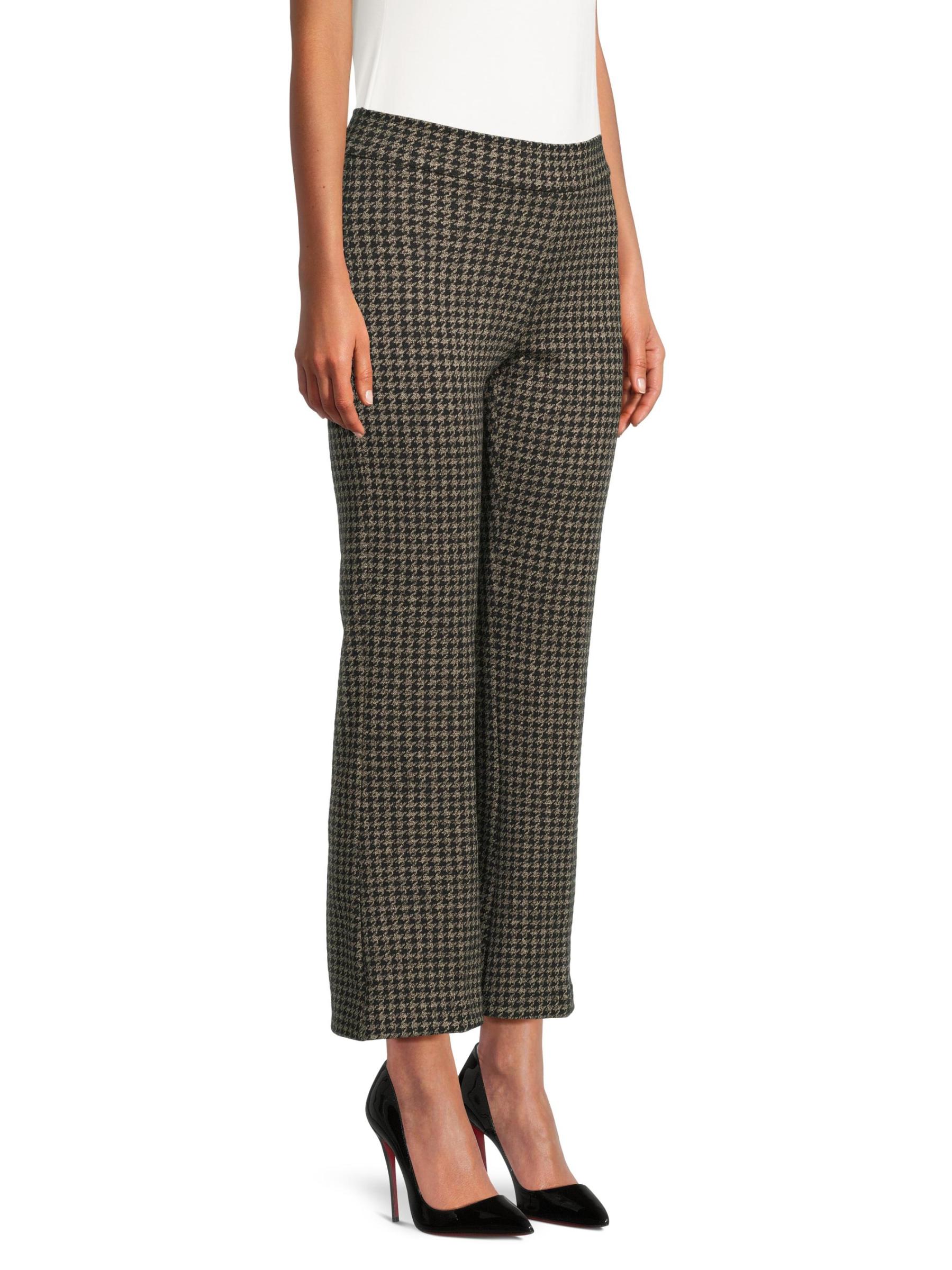 من مجموعة أفينيو مونتين. تم تصميم هذا البنطال سهل الارتداء من Avenue Montaigne بنمط هاوندستوث وخصر مطوق وشكل ساق متوهج.