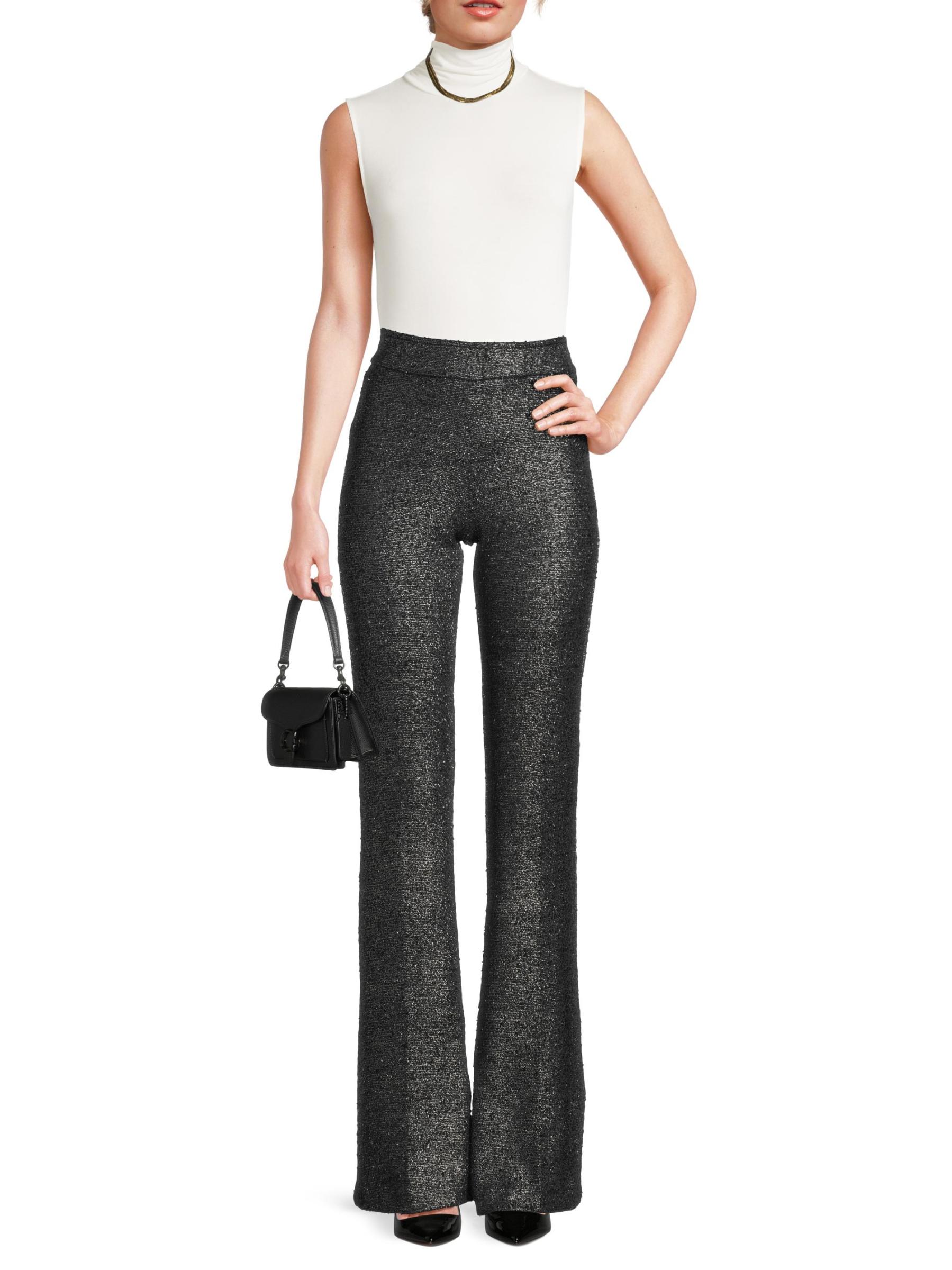 من مجموعة أفينيو مونتين. تم تصميم هذا البنطال المعدني من أفينيو مونتين، المصنوع من قماش مطاطي، بخصر مطوق وشكل ساق متوهج.