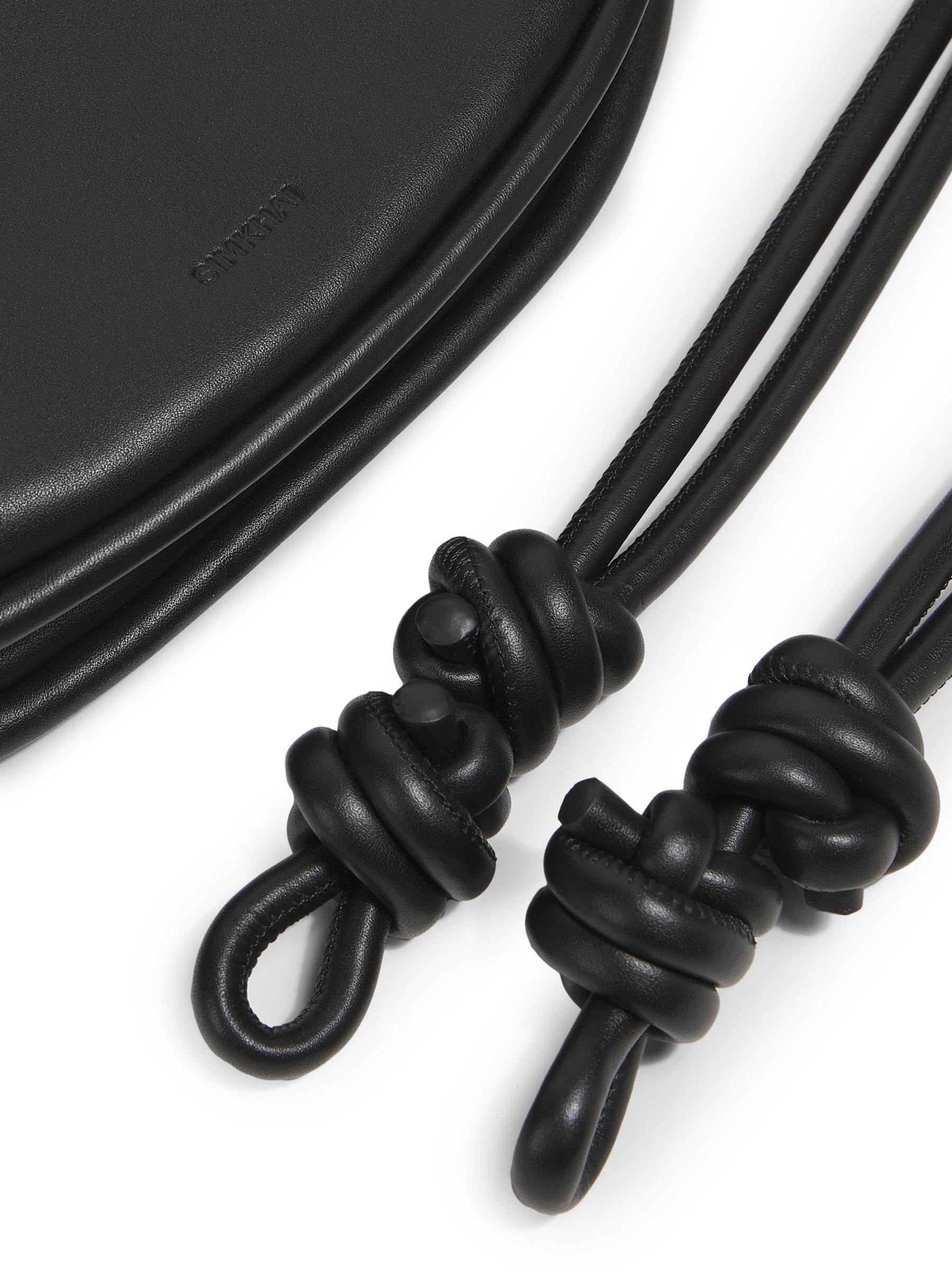 حقيبة Avery بحزام يلتف حول الجسم من SIMKHAI مصنوعة من الجلد المرن، وتتميز بحزام معقود لإطلالة راقية. تحتوي هذه القطعة على فتحات داخلية للبطاقات وسحّاب علوي للإغلاق.