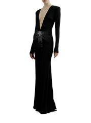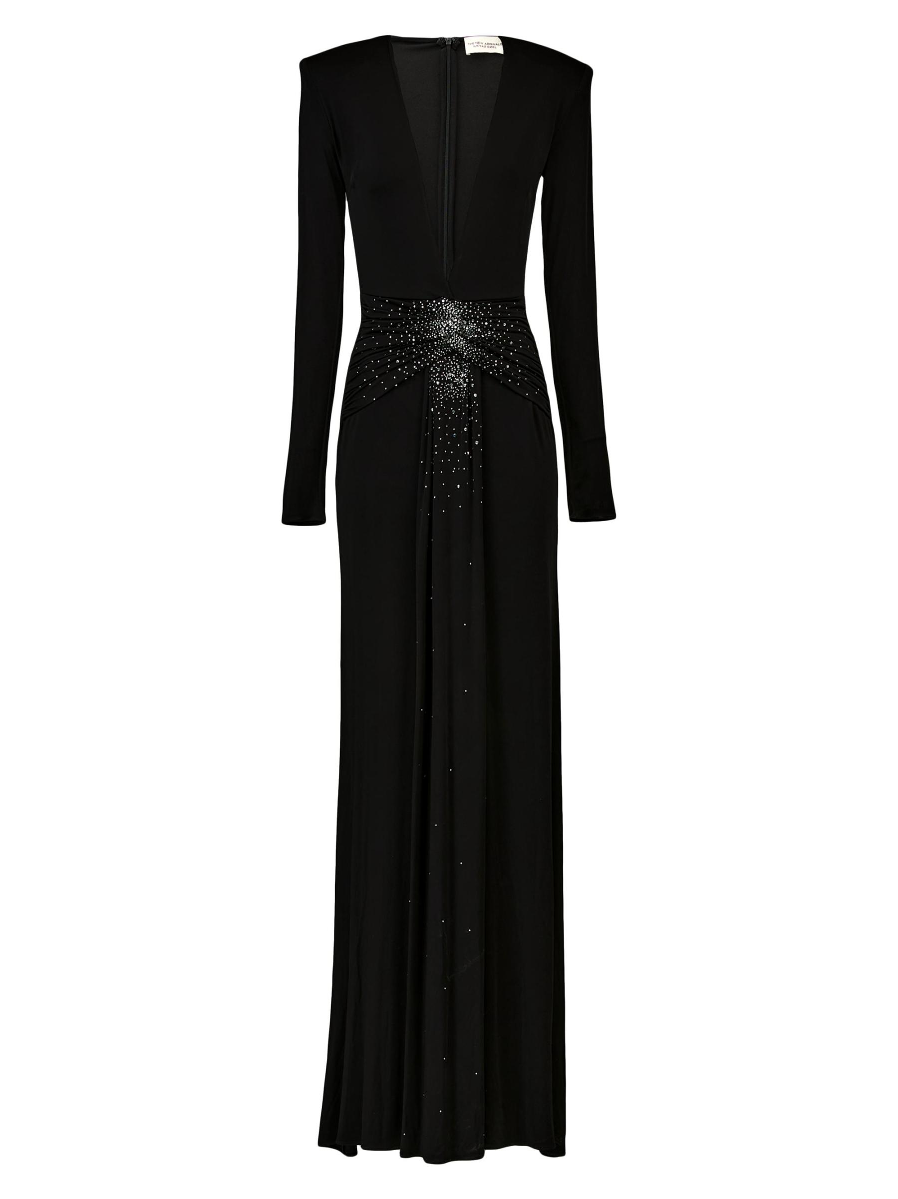 صُنع فستان Azure من The New Arrivals Ilkyaz Ozel من الجيرسيه اللامع في صورة ظلية مثيرة على شكل حرف V. تُزيّن أحجار الراين المتلألئة الخصر المصفّح من الأمام للحصول على لمسة نهائية راقية.رقبة واسعة على شكل حرف V أكمام طويلة إغلاق بسحّاب خلفي 100% بوليستر تنظيف جاف مستوردة