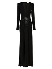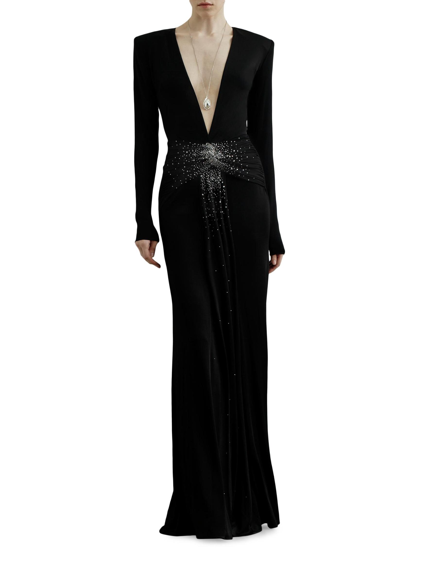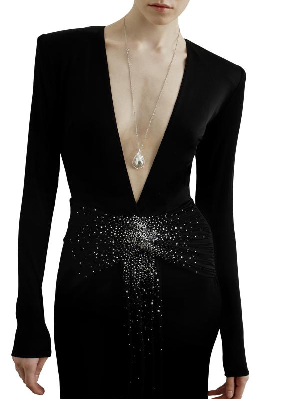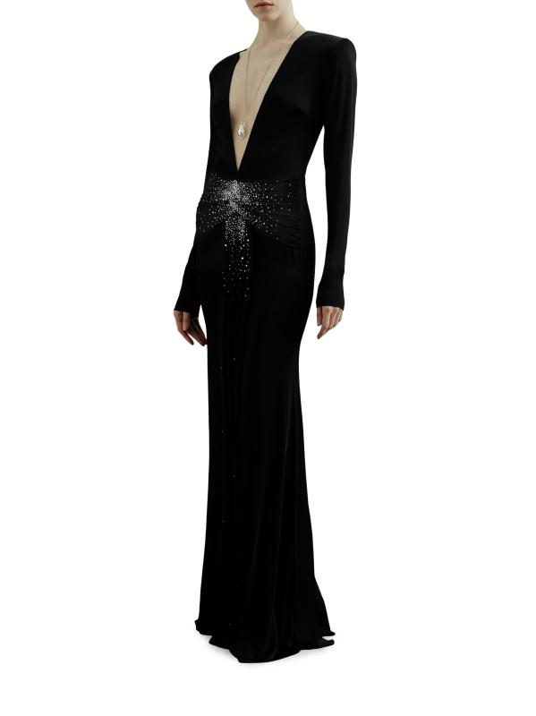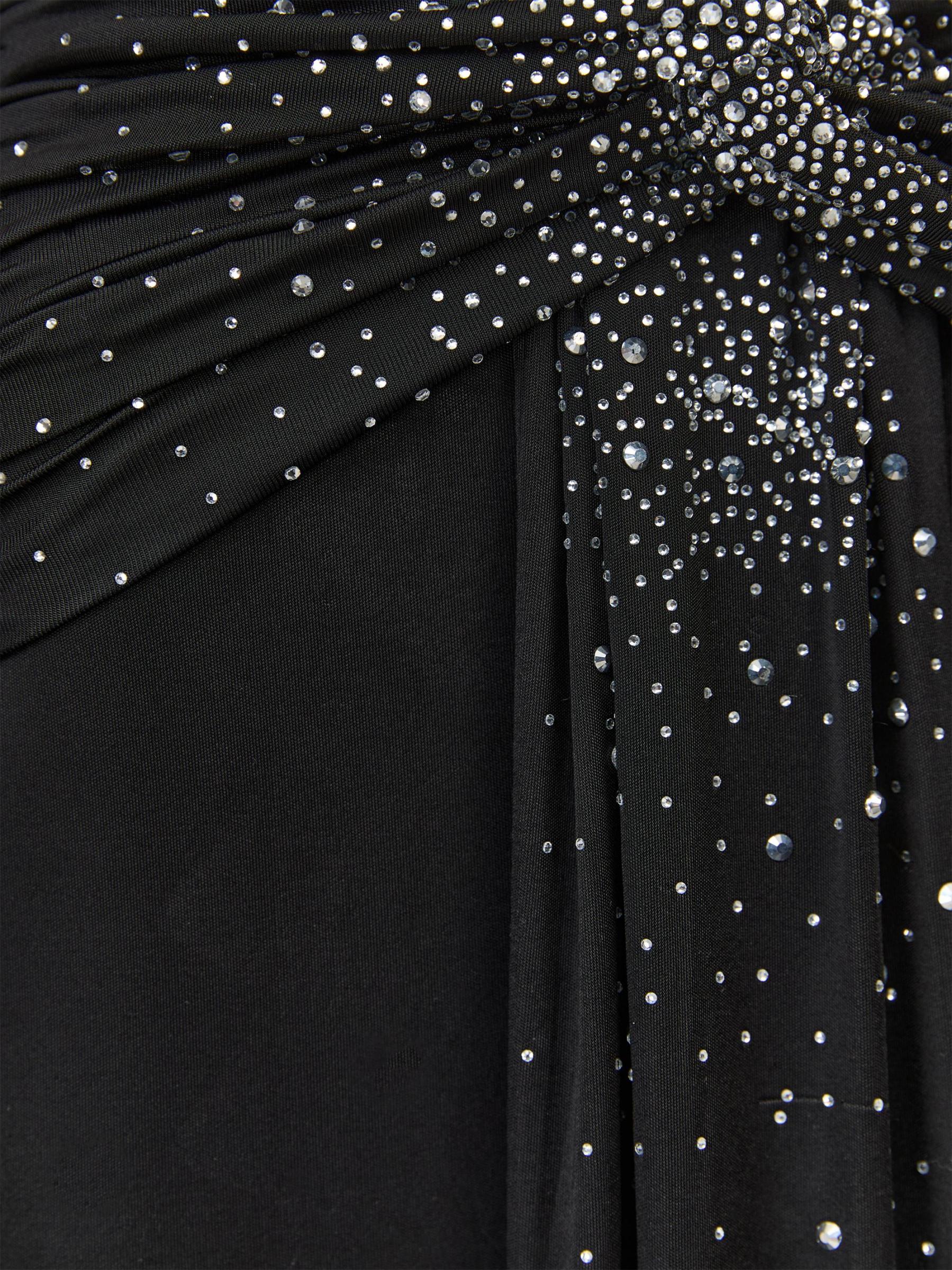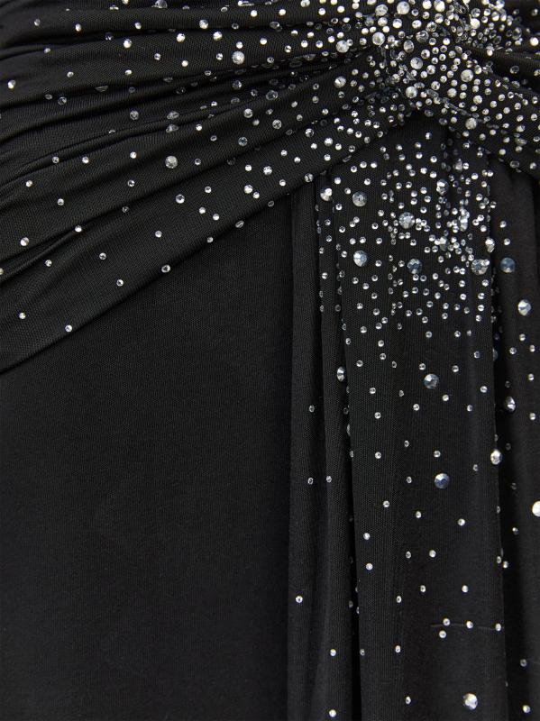 فستان جيرسي برقبة على شكل حرف V مزين بحجر الراين الأزرق