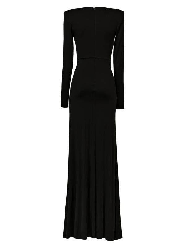 صُنع فستان Azure من The New Arrivals Ilkyaz Ozel من الجيرسيه اللامع في صورة ظلية مثيرة على شكل حرف V. تُزيّن أحجار الراين المتلألئة الخصر المصفّح من الأمام للحصول على لمسة نهائية راقية.