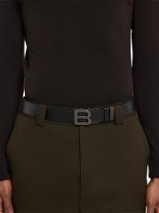 يتميز حزام Bally القابل للانعكاس هذا، المزين بإبزيم مصقول بشعار B، بجلد ناعم على جانب واحد وجلد محبب على الجانب الخلفي لتصميم متعدد الاستخدامات.